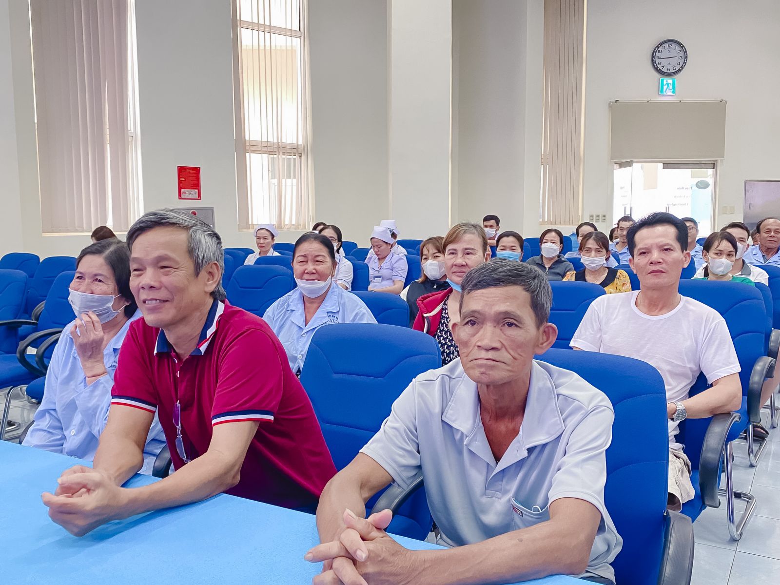 Trong những năm gần đây, Bệnh viện chú trọng công tác đào tạo, nâng cao trình độ cho viên chức, người lao động, từ chuyên môn nghiệp vụ được nâng cao đến kỹ năng giao tiếp và ứng xử thân thiện với người bệnh. Vì vậy, tại các buổi họp này, bệnh viện xin ý kiến đóng góp của người bệnh, người nhà người bệnh về thái độ, đón tiếp, khám chữa bệnh tại Bệnh viện.