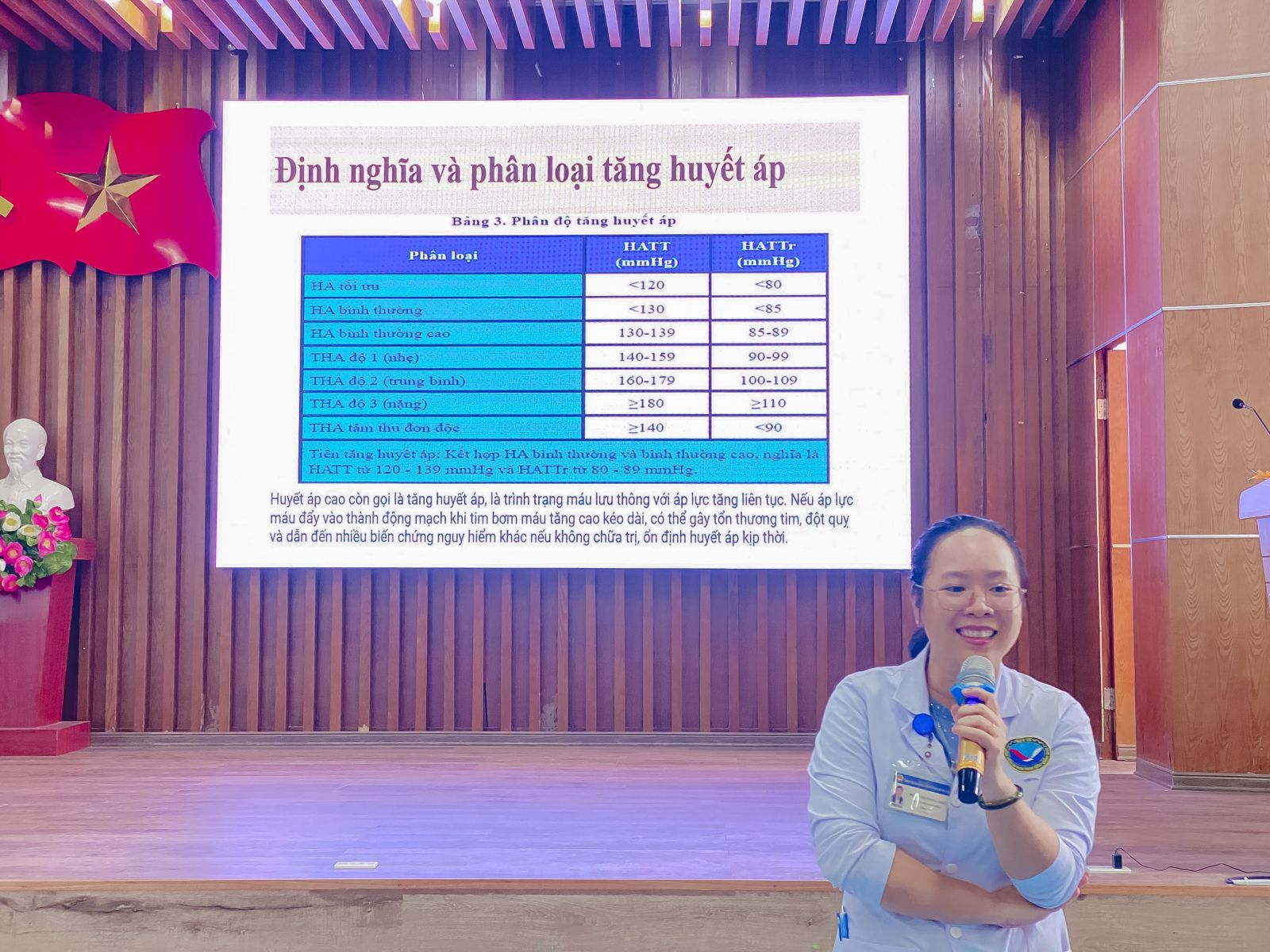 ThS. Đặng Thị Hoàng Khuê - Trưởng Khoa Dinh Dưỡng đã tư vấn cho người bệnh, người nhà người bệnh về Dinh dưỡng cho bệnh lý tăng huyết áp.