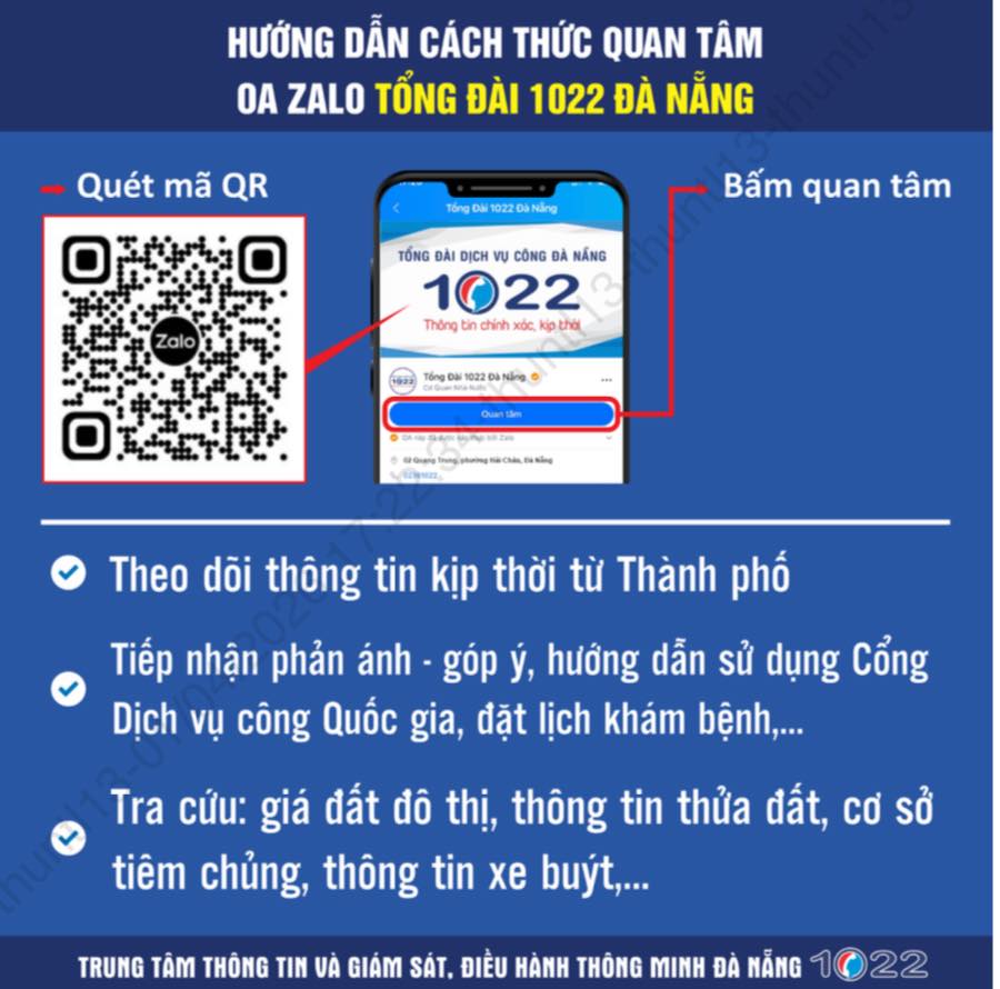 Hướng dẫn quan tâm OA Zalo “Tổng đài 1022 Đà Nẵng” – kênh thông tin hữu ích cho người dân
