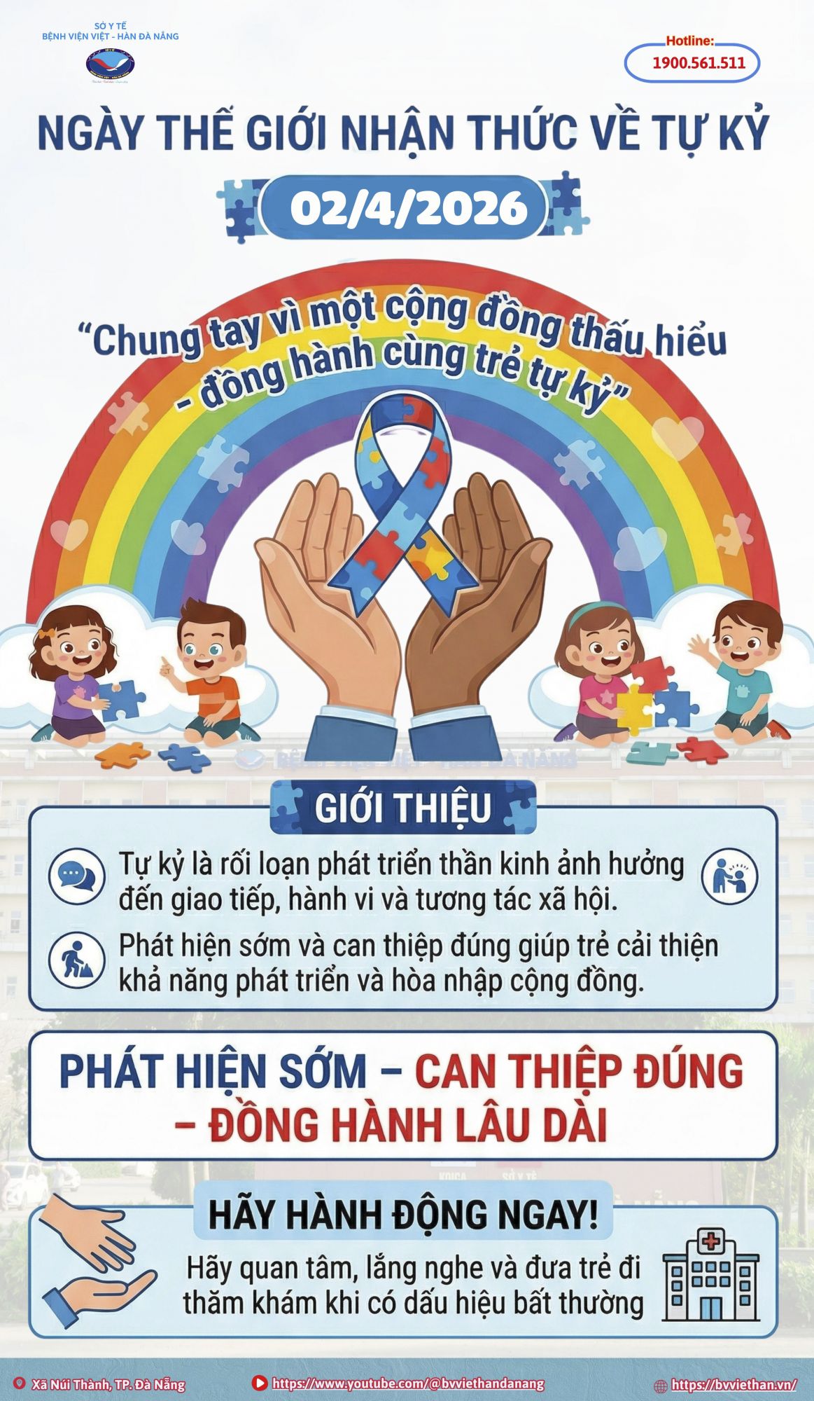 Bệnh viện Việt – Hàn Đà Nẵng kêu gọi cộng đồng cùng nâng cao nhận thức, xóa bỏ kỳ thị và đồng hành cùng trẻ tự kỷ.