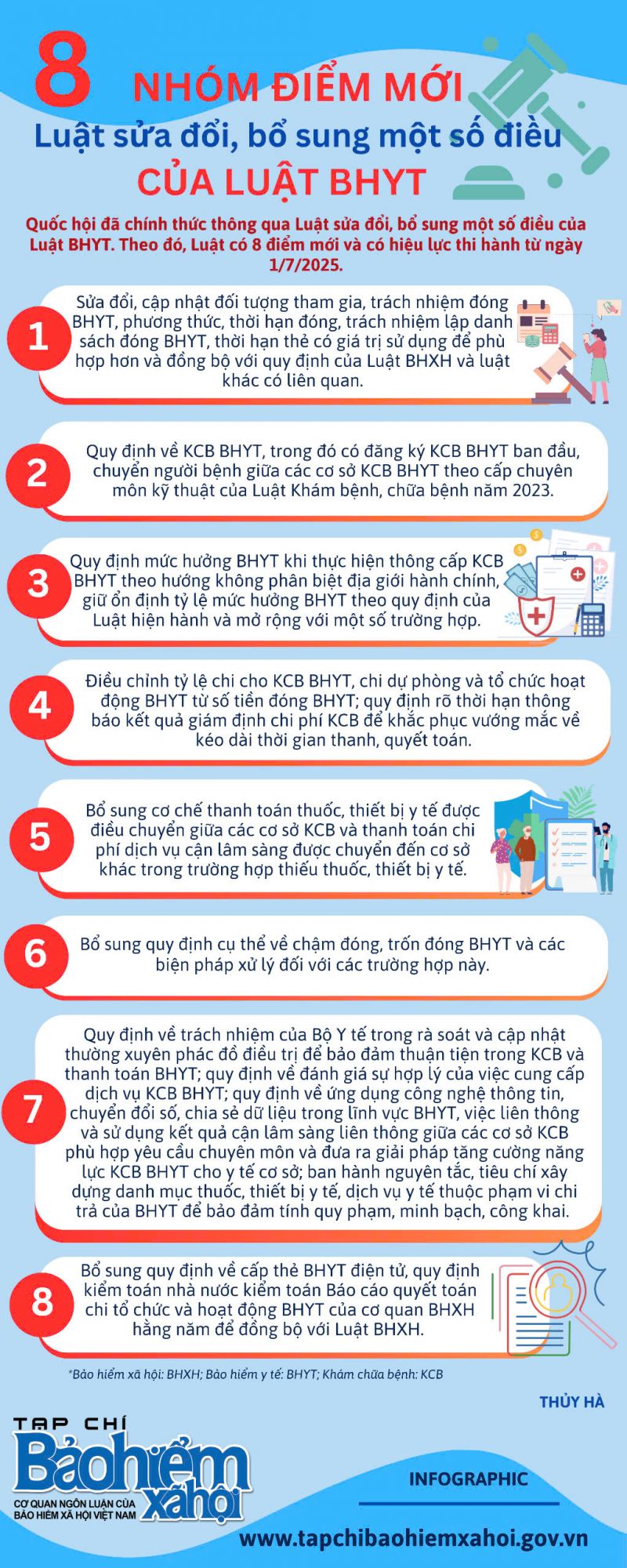 Thứ 5, 02/01/2025 | 07:52 A- A A+ | Infographic - 8 nhóm điểm mới Luật sửa đổi, bổ sung một số của Luật BHYT năm 2025 Đọc bài Lưu Nguồn: Tạp chí Bảo hiểm xã hội Tổng số điểm của bài viết là: 0 trong 0 đánh giá Click để đánh giá bài viết