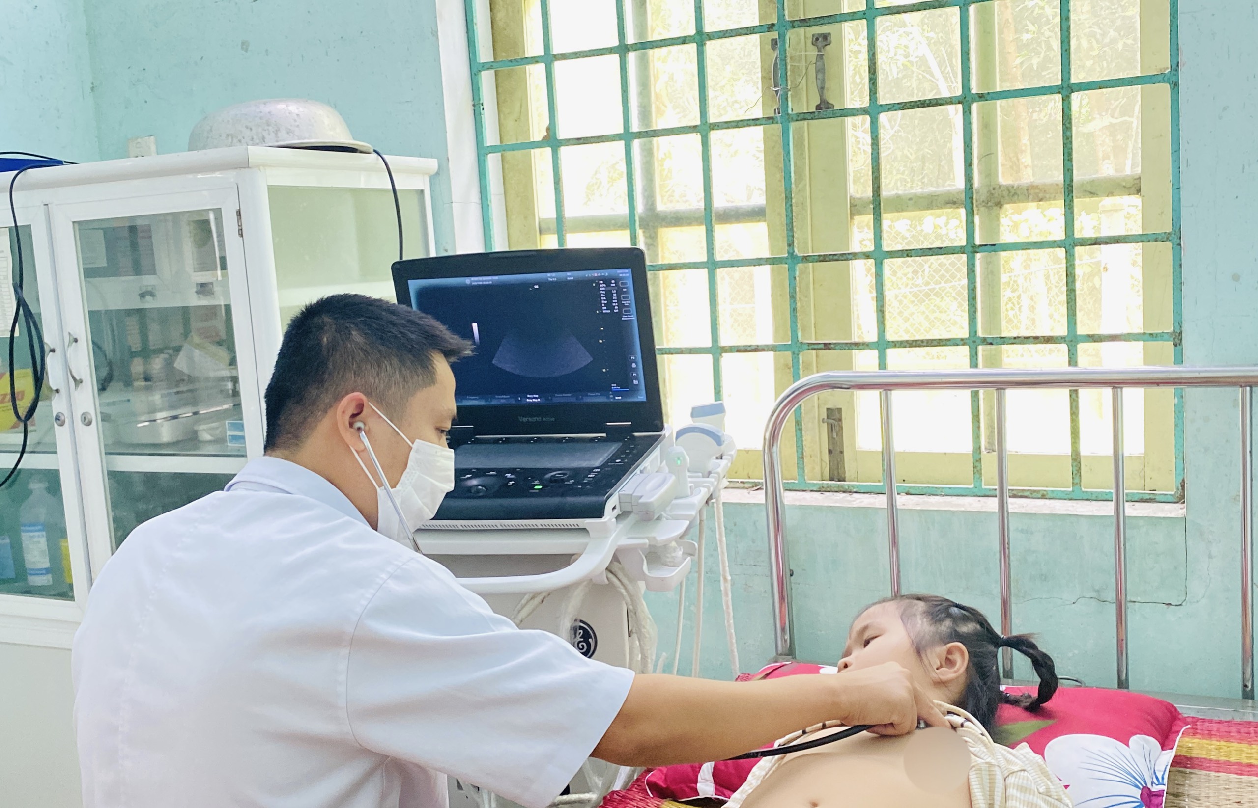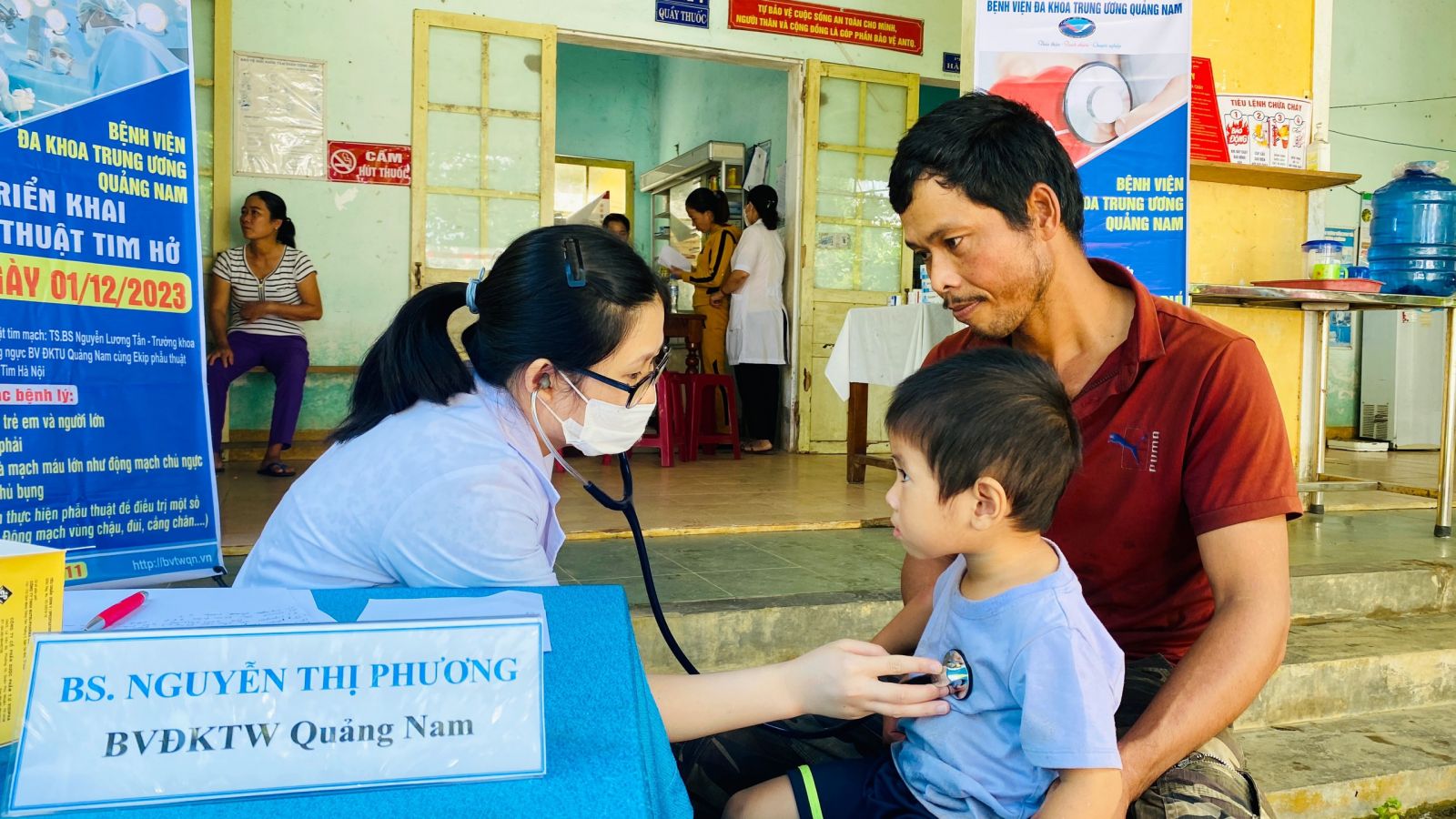 Trong chương trình khám tầm soát, các bác sĩ thuộc khoa Nội tim mạch, Bệnh viện Đa khoa Trung ương Quảng Nam khám sàng lọc cho tất cả người lớn và trẻ em tại xã Tam Sơn (huyện Núi Thành).