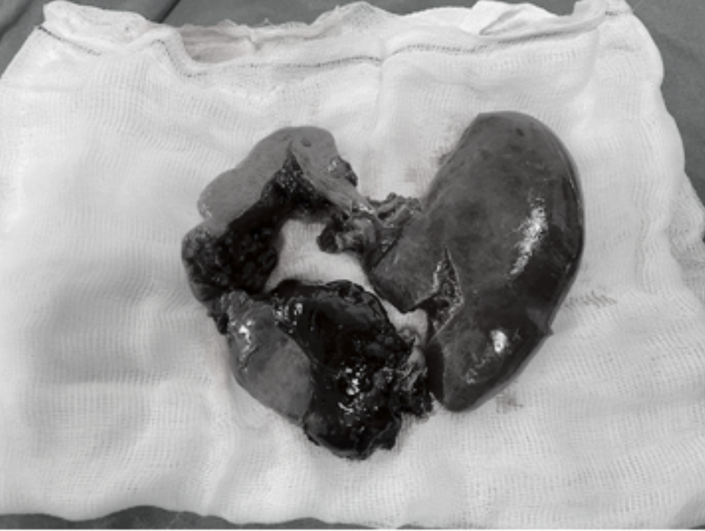 Lách bị vỡ của người bệnh H. được lấy ra sau phẫu thuật.