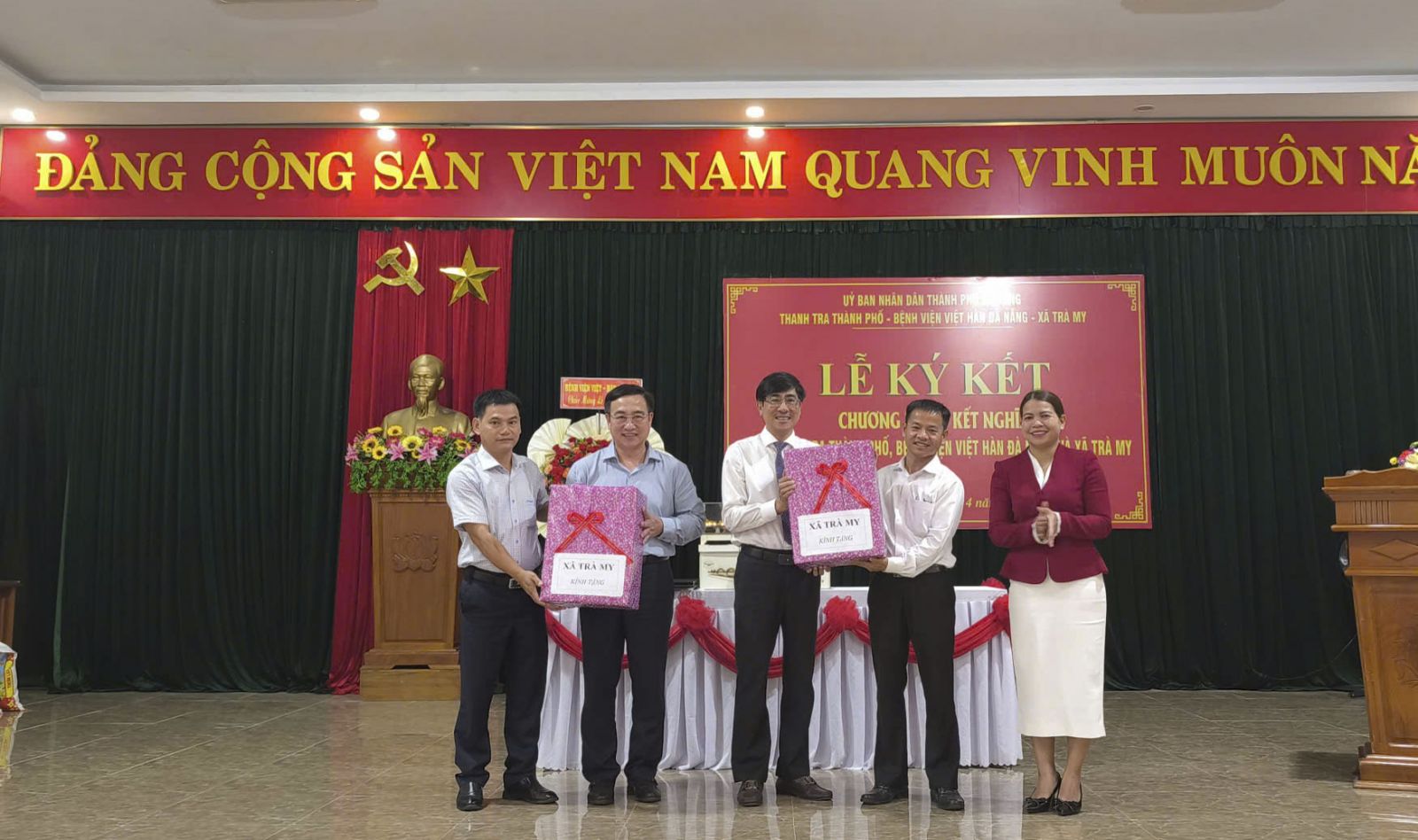 Tham dự chương trình có đồng chí Trần Thắng Lợi – Thành ủy viên, Chánh Thanh tra thành phố Đà Nẵng; đồng chí Nguyễn Đình Hùng – Bí thư Đảng ủy, Giám đốc Bệnh viện Việt – Hàn Đà Nẵng; đồng chí Phùng Văn Huy – Bí thư Đảng ủy, Chủ tịch HĐND xã Trà My và đồng chí Ngô Quốc Vương - Phó Bí thư Đảng uỷ, Chủ tịch UBND xã Trà My cùng lãnh đạo các đơn vị liên quan.