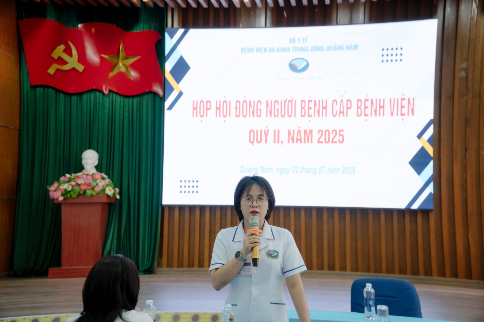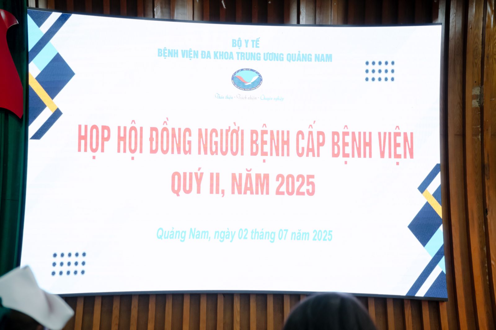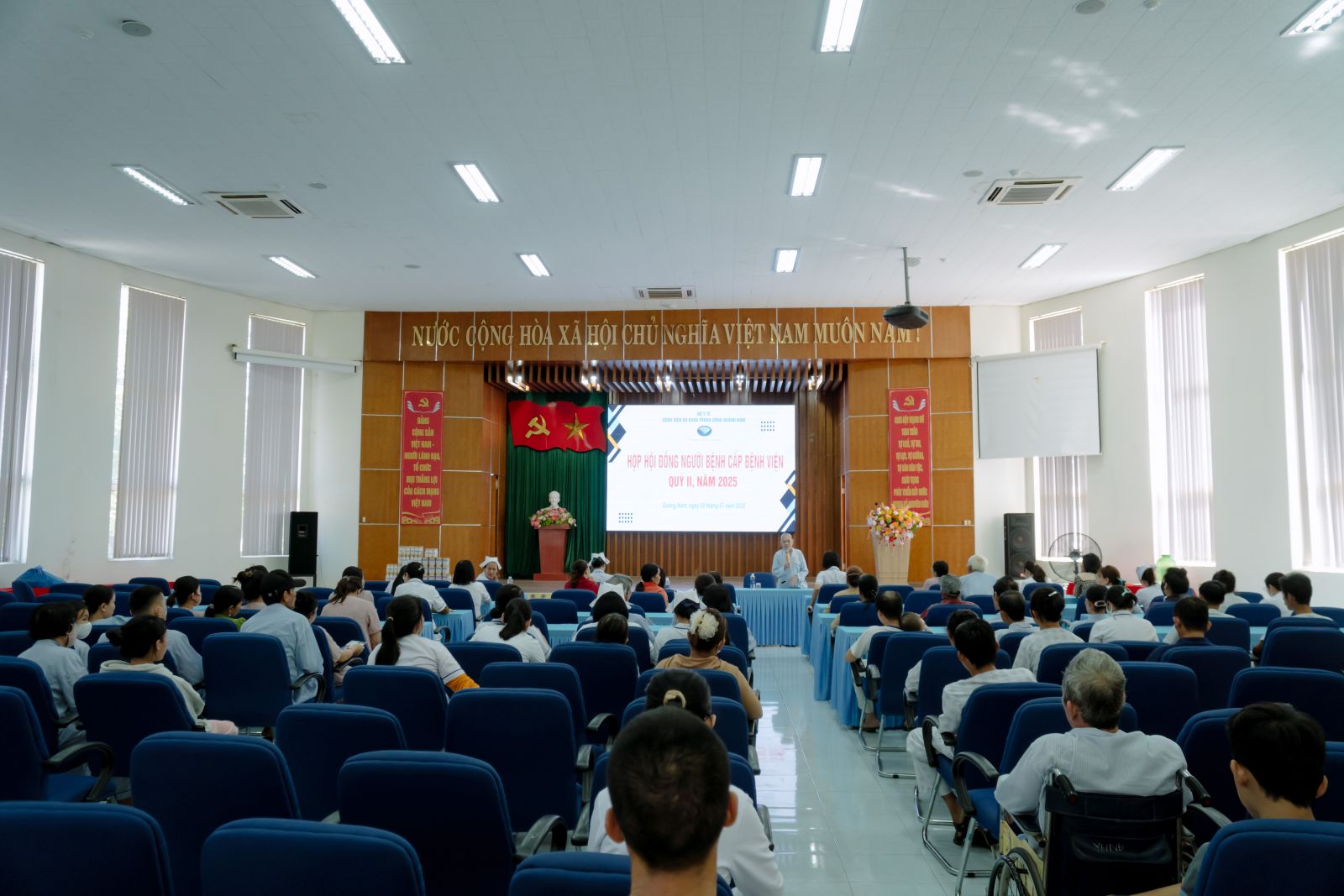 (BVDKTWQN) - Chiều 2/7, Bệnh viện Đa khoa Trung ương Quảng Nam tổ chức buổi họp Hội đồng người bệnh cấp bệnh viện quý II/2025 với sự tham dự của đại diện các khoa, phòng cùng đông đảo người bệnh và người nhà người bệnh.