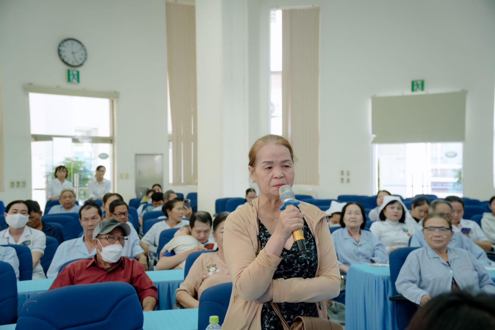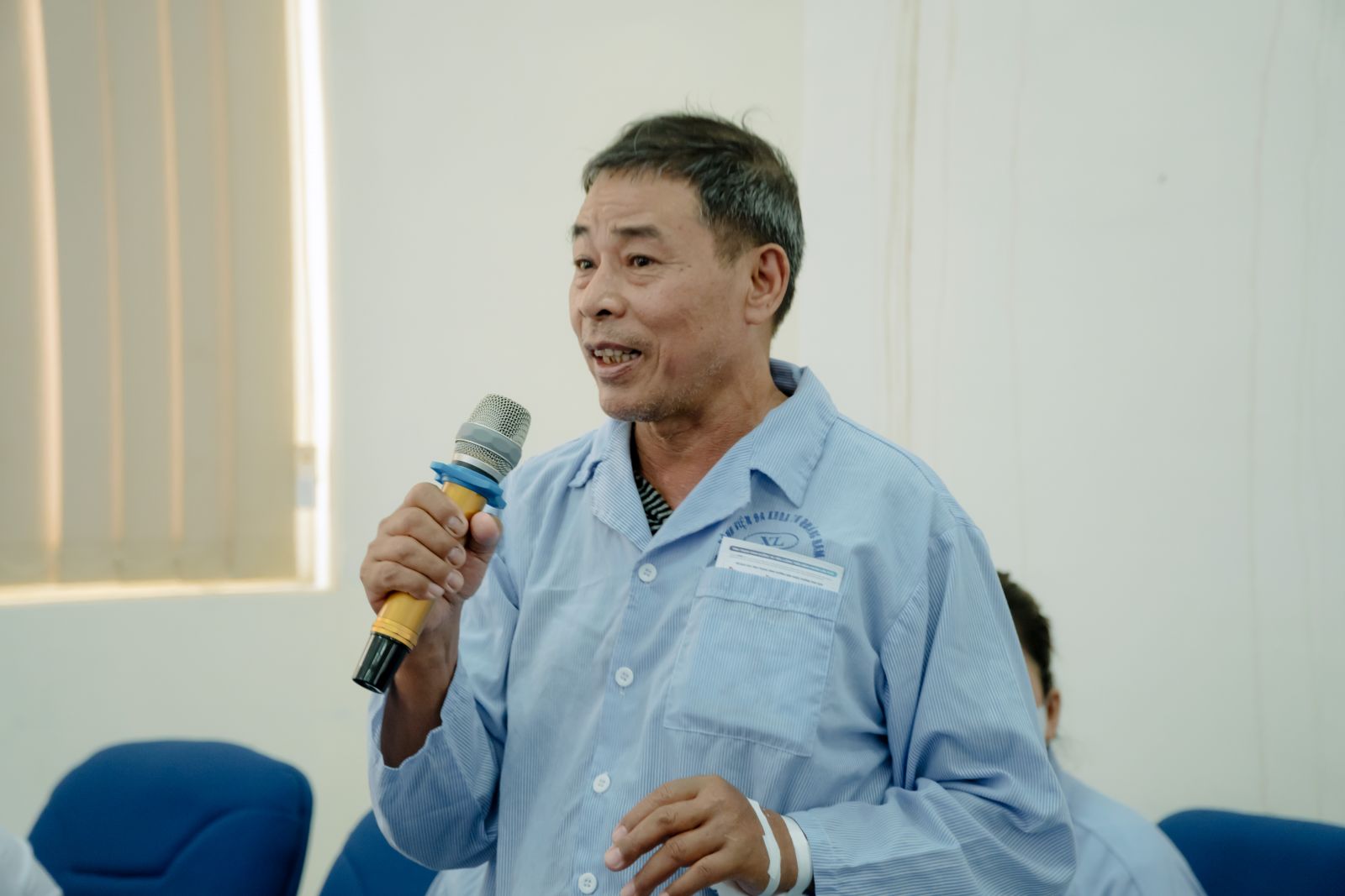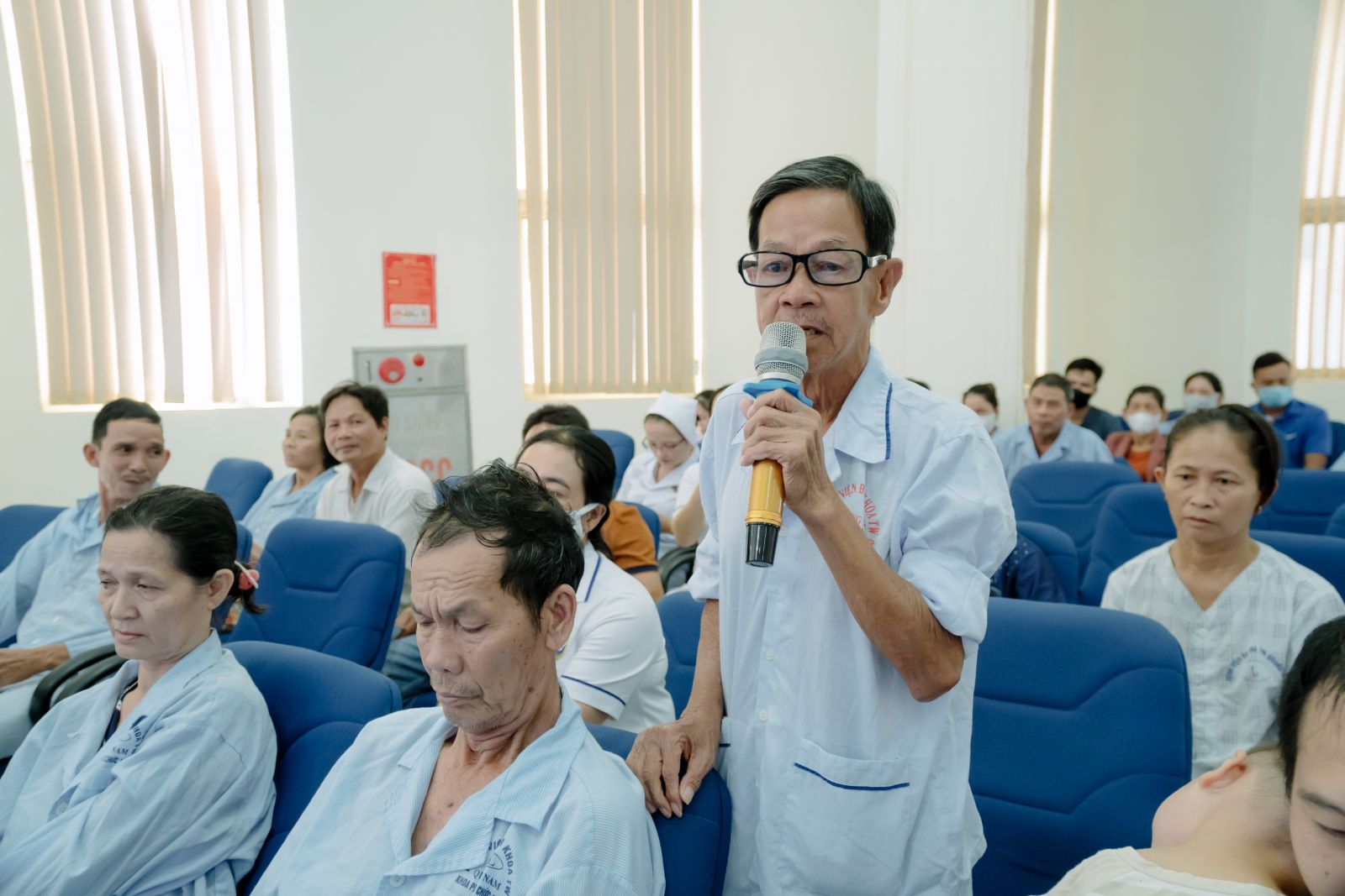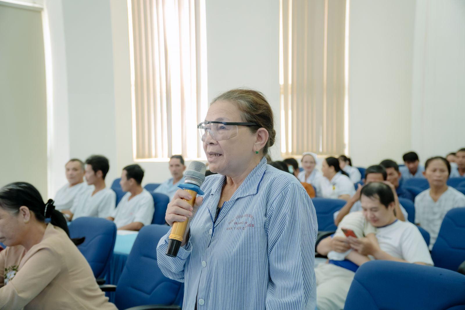 Điểm nhấn của buổi họp là phần thảo luận, chia sẻ đến từ chính người bệnh. Trong vai trò chủ tọa, bà Nguyễn Thị Phước – người đang điều trị tại Khoa Nội tổng hợp – đã đại diện người bệnh bày tỏ sự cảm ơn đối với sự tận tình của đội ngũ y, bác sĩ, đồng thời thẳng thắn góp ý một số vấn đề còn tồn tại. Các ý kiến góp ý của quý người bệnh và người nhà người bệnh được bệnh viện tiếp nhận và ghi nhận đầy đủ.