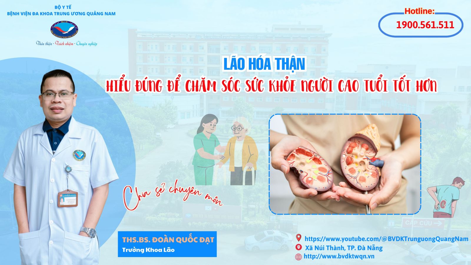 Bệnh viện Đa khoa Trung ương Quảng Nam luôn đồng hành cùng người dân trong việc tầm soát, tư vấn và chăm sóc sức khỏe thận – đặc biệt là nhóm người cao tuổi – để mỗi người có thể sống khỏe, sống an tâm và chất lượng hơn.
