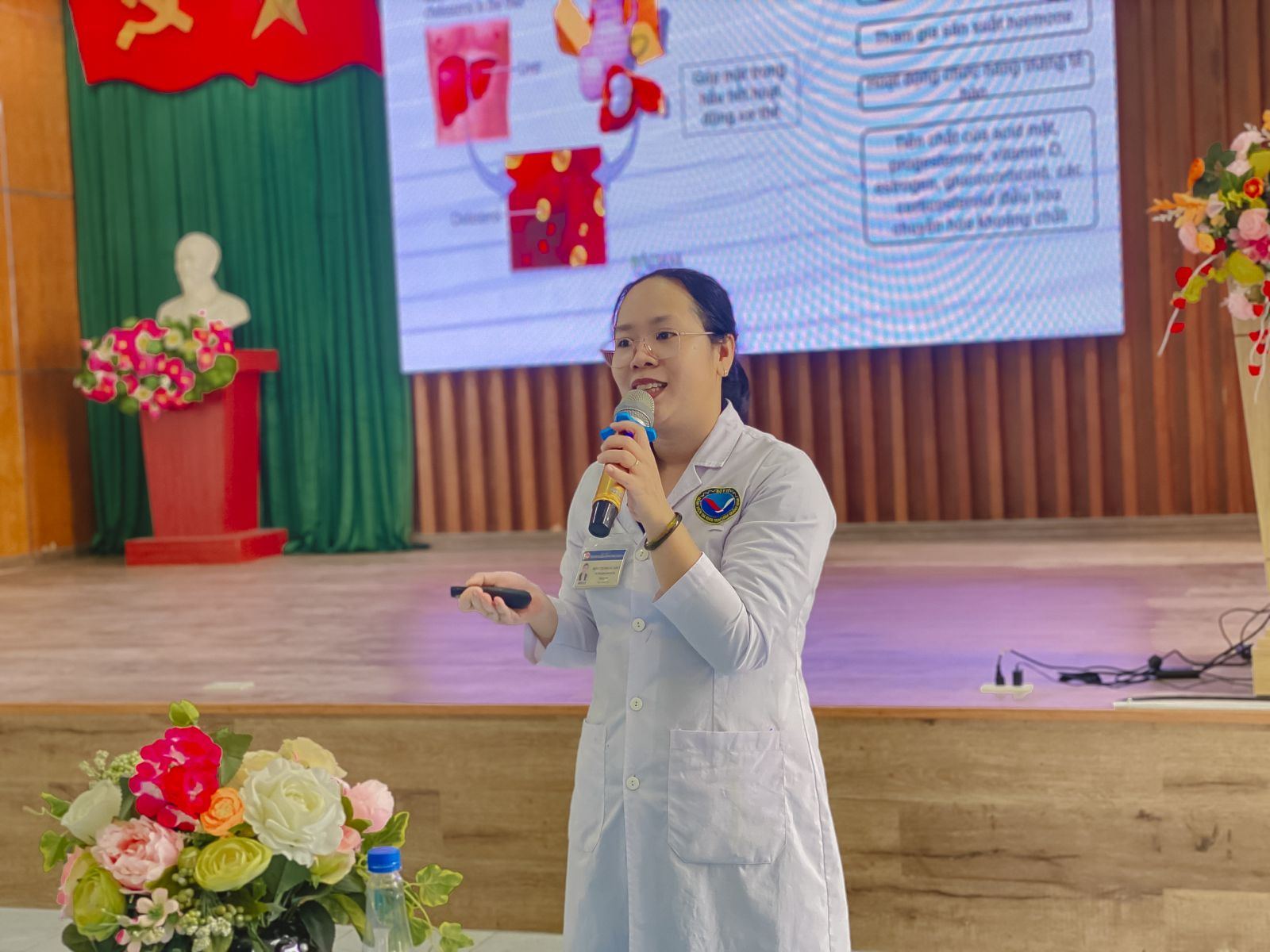 Giảng viên ThS.Đặng Hoàng Khuê - Trưởng khoa Dinh dưỡng Bệnh viện trình bày bài giảng dạy.