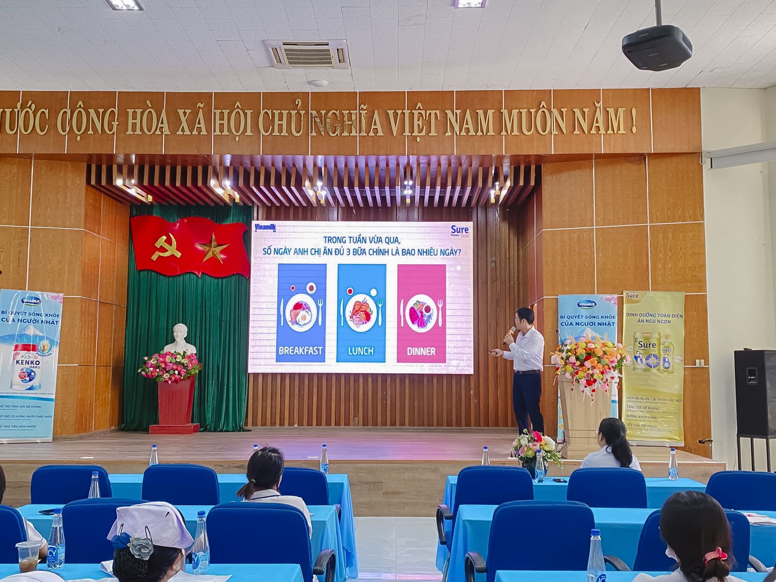 Đến tham dự lớp đào tạo của bệnh viện, về phía Công ty cổ phần Vinamilk Việt Nam có ông Trần Minh Xuân, cũng chính là giảng viên trình bày về nội dung bài thuyết trình: “Dinh dưỡng hợp lý cho người bệnh” cho 120 học viên là điều dưỡng trưởng, thành viên mạng lưới dinh dưỡng khoa lâm sàng và 30% điều dưỡng khoa lâm sàng tại viện.