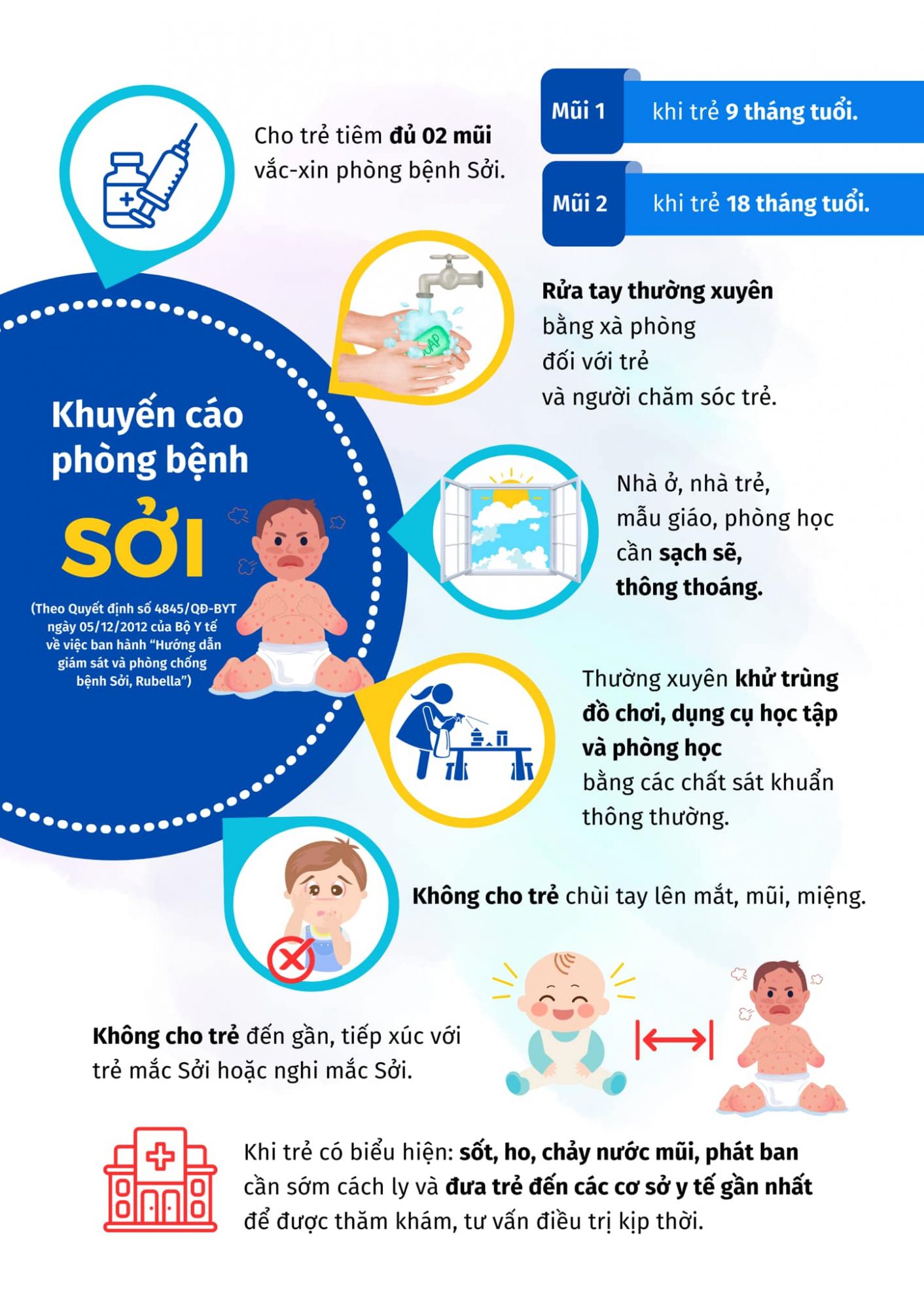 Sởi là căn bệnh nguy hiểm nhưng hoàn toàn có thể phòng ngừa được. Việc tiêm phòng đầy đủ và thực hiện các biện pháp bảo vệ sức khỏe sẽ giúp giảm nguy cơ mắc bệnh và ngăn chặn các biến chứng nguy hiểm. Bố mẹ cần chủ động đưa trẻ đi tiêm vắc-xin đúng lịch và theo dõi sát sao sức khỏe của con trong mùa dịch để đảm bảo an toàn cho cả gia đình.