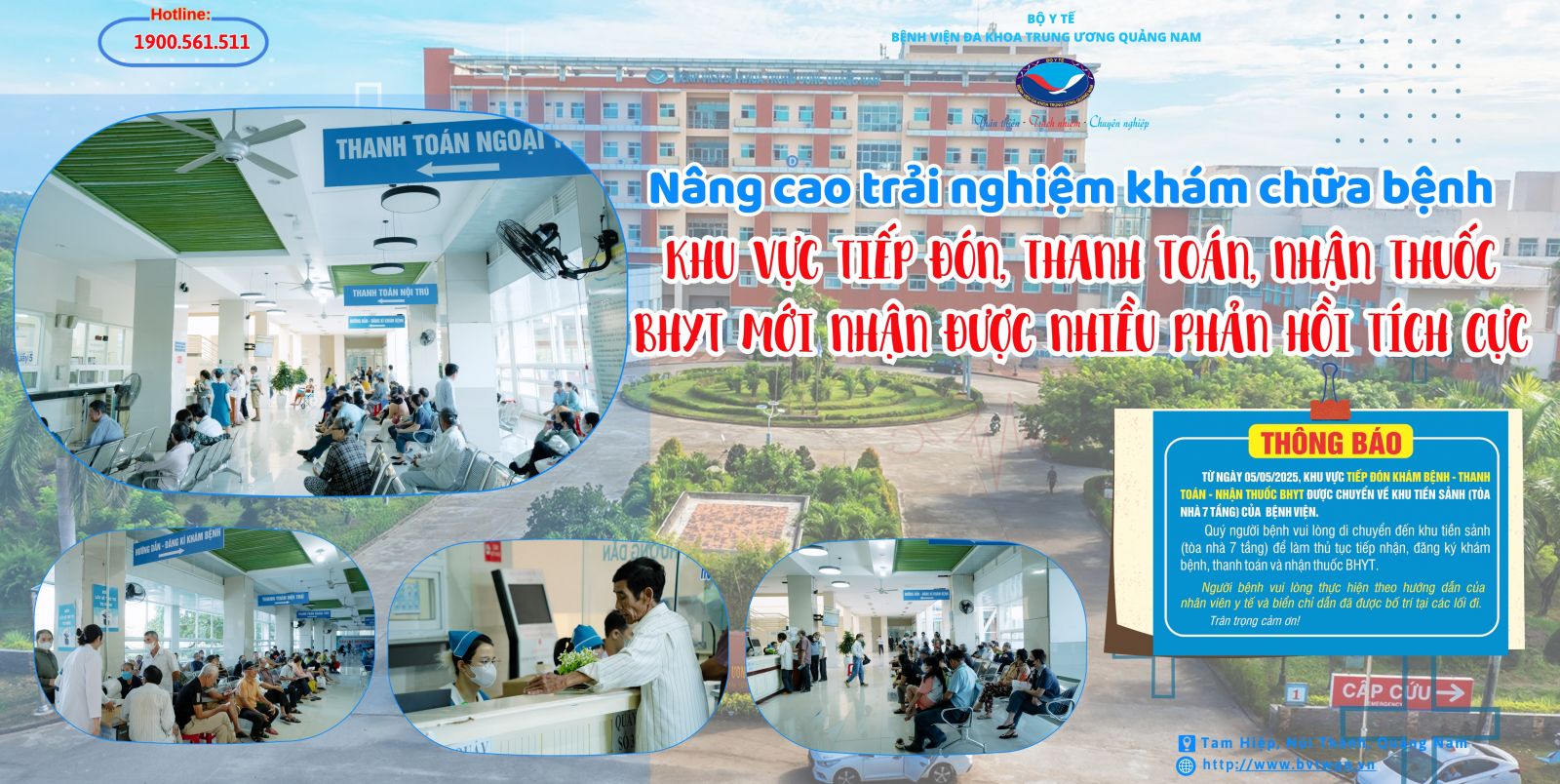 Với mục tiêu cải thiện chất lượng phục vụ và nâng cao sự hài lòng của người bệnh, Bệnh viện Đa khoa Trung ương Quảng Nam đã bố trí lại khu vực tiếp đón, thanh toán và cấp phát thuốc BHYT tại sảnh chính của tòa nhà 7 tầng. Sau một tháng đưa vào sử dụng, khu vực này đã mang đến nhiều thay đổi tích cực.