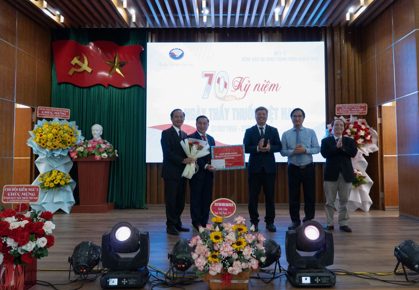 Phó Chủ tịch tỉnh Quảng Nam Hồ Quang Bửu tặng quà chúc mừng 70 năm Ngày Thầy thuốc Việt Nam cho Bệnh viện Đa khoa Trung ương Quảng Nam.