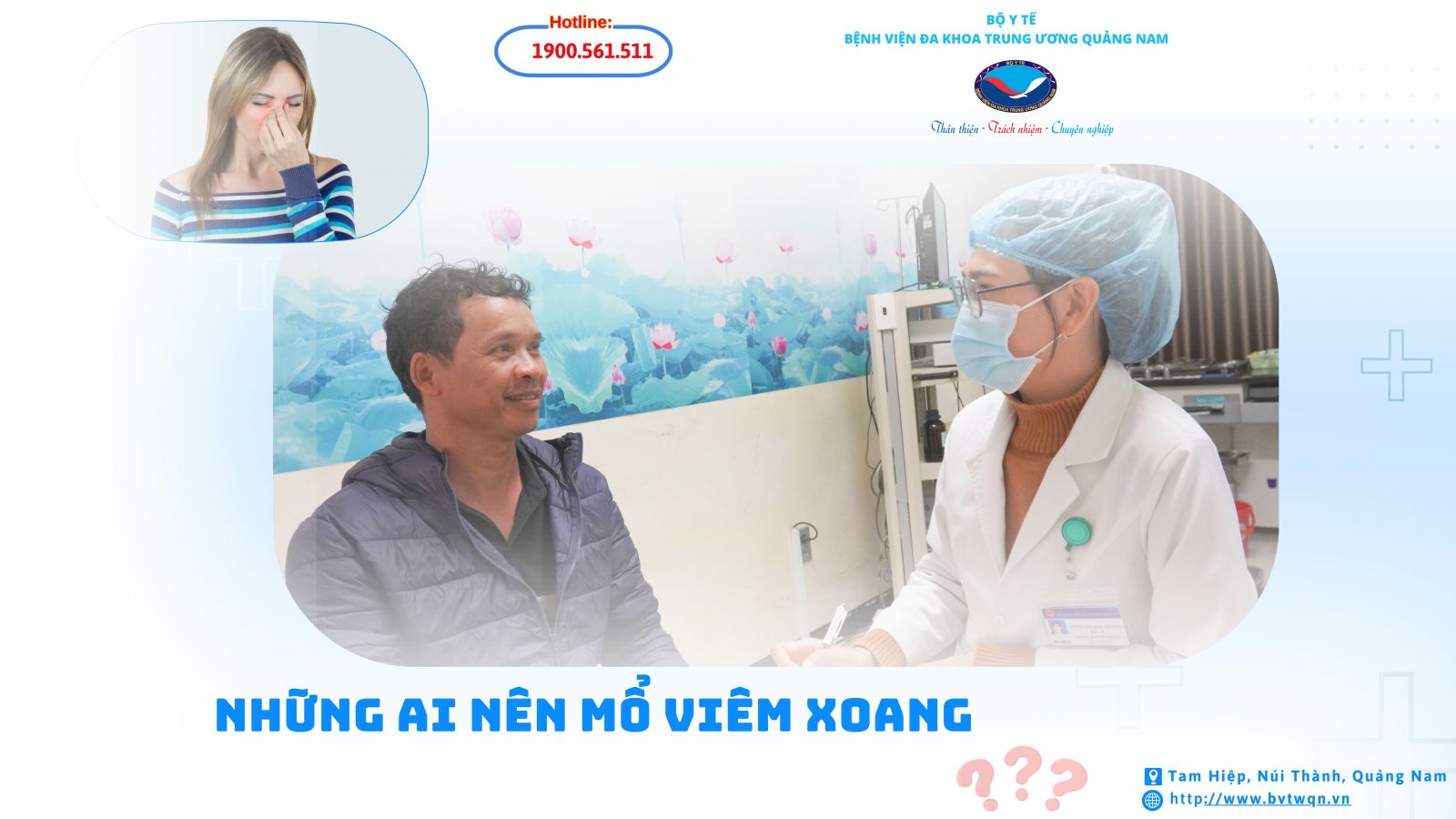 Nếu bạn hoặc người thân đang gặp vấn đề về viêm xoang, hãy đến Bệnh viện Đa khoa Trung ương Quảng Nam để được thăm khám và tư vấn kỹ lưỡng. Việc điều trị kịp thời không chỉ giúp cải thiện chất lượng cuộc sống mà còn bảo vệ sức khỏe lâu dài của bạn.