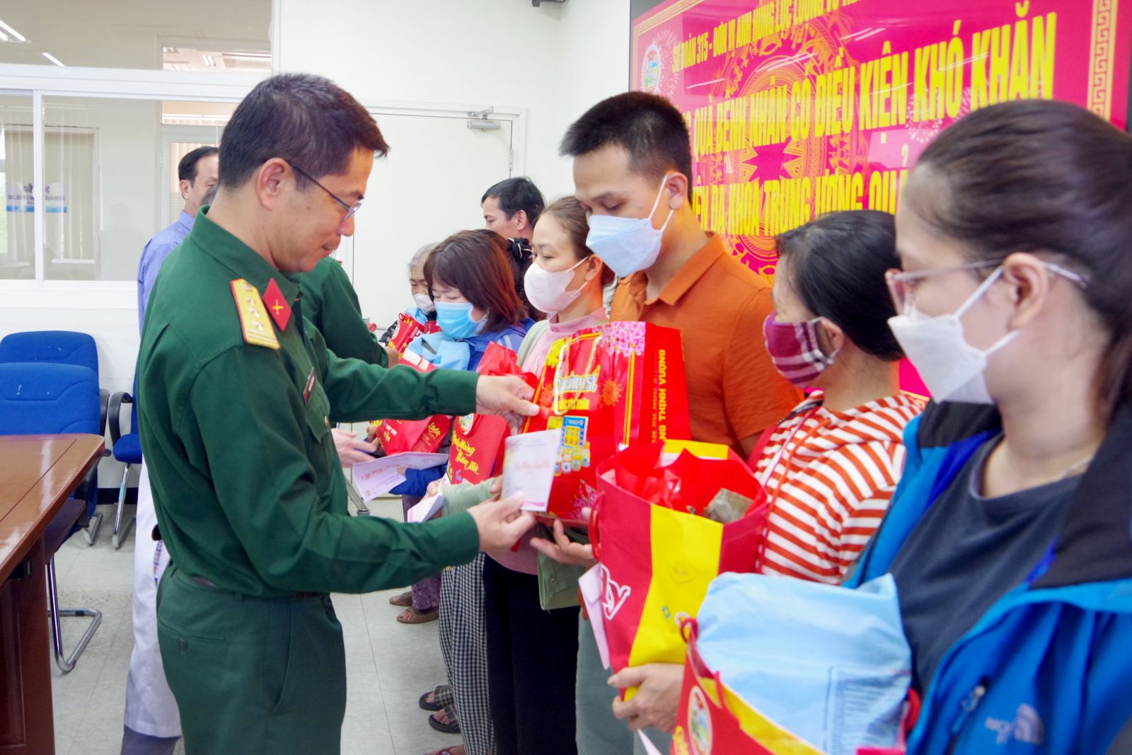 Sư đoàn 315 tặng quà cho người bệnh khó khăn ăn tết tại viện.