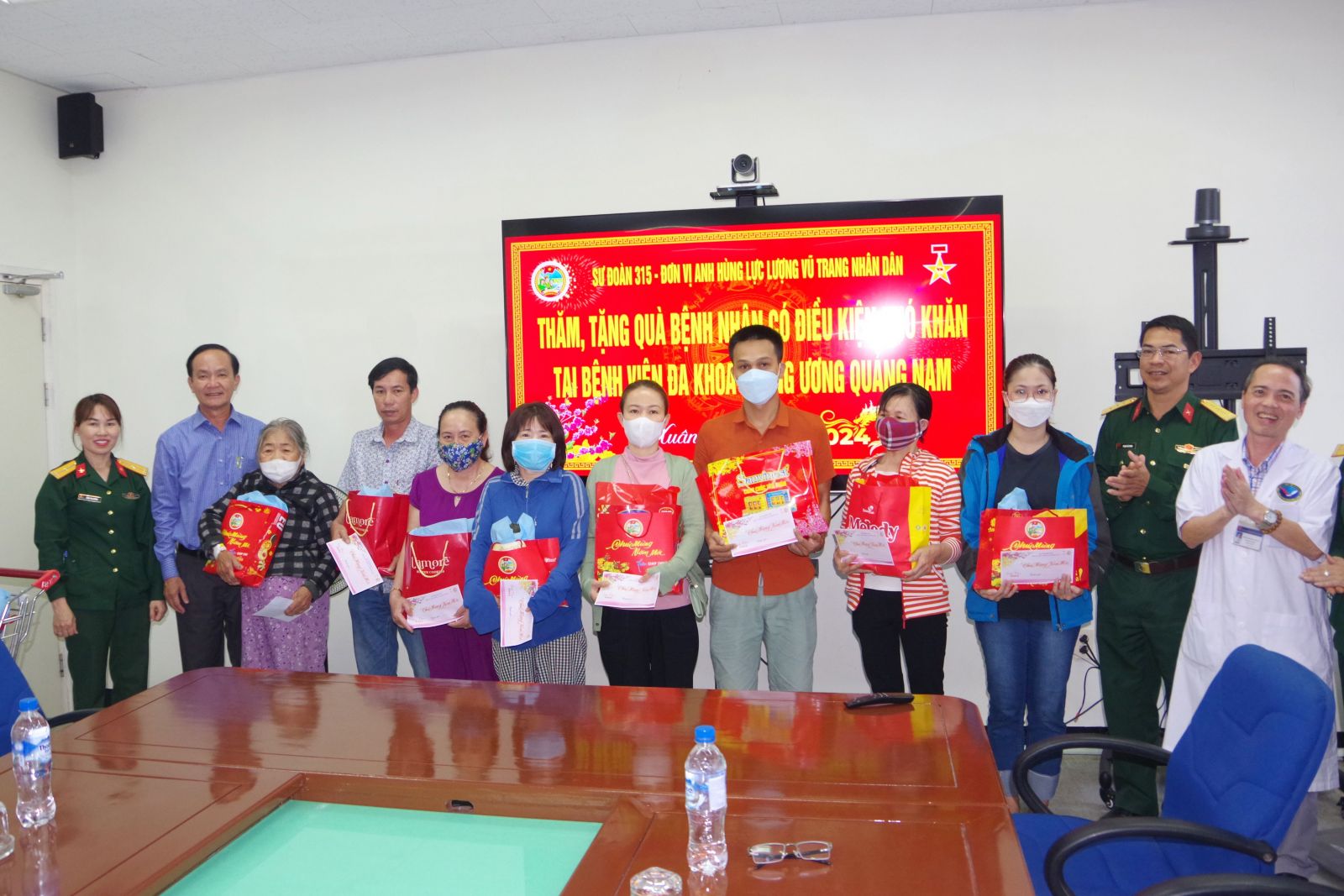 * Chiều ngày 28 tết, Đoàn cán bộ, chiến sĩ Sư đoàn 315 do Thượng tá Phạm Hải Minh, Phó Chính ủy Sư đoàn làm trưởng đoàn đã đến thăm, tặng quà các bệnh nhân có hoàn cảnh khó khăn tại Bệnh viện Đa khoa Trung ương Quảng Nam. Tại buổi gặp mặt, đồng chí Phó Chính ủy Sư đoàn cùng đoàn công tác đã tặng 15 suất quà, 60 cặp bánh chưng, bánh Tét; đồng thời ân cần thăm hỏi, động viên các bệnh nhân yên tâm phối hợp tốt với cán bộ, y, bác sĩ của các bệnh viện để điều trị hiệu quả, chiến thắng bệnh tật, ổn định sức khỏe và đón Tết Nguyên đán 2024 ấm áp, vui vẻ. Đây là hoạt động có ý nghĩa, thể hiện tình cảm, sự sẻ chia của cán bộ, chiến sĩ Sư đoàn 315 đối với các bệnh nhân có hoàn cảnh khó khăn trước thềm Tết cổ truyền dân tộc.