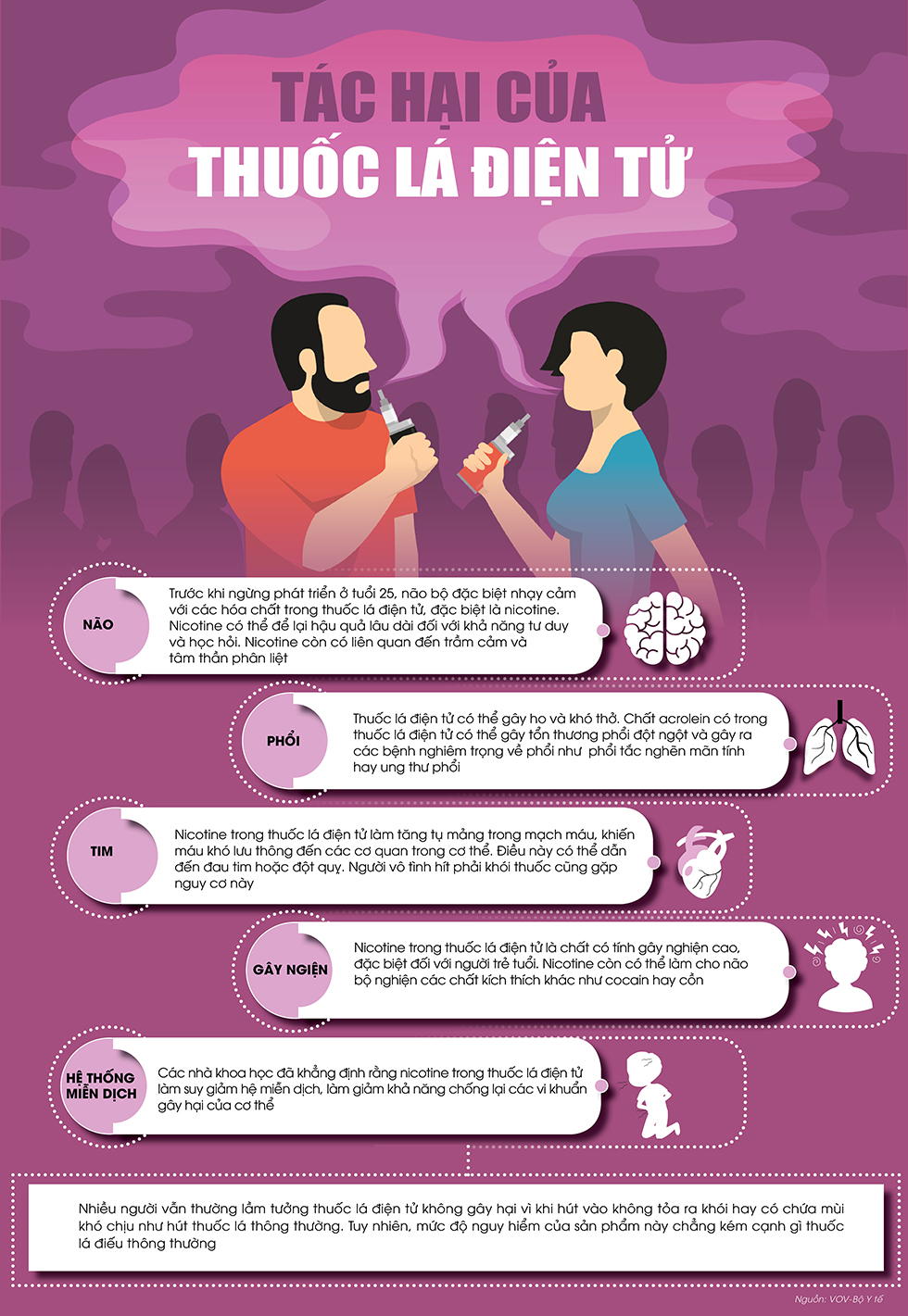 - Nếu bạn hút thuốc lá hoặc sử dụng các sản phẩm được làm từ thuốc lá khác ngoài thuốc lá điện tử thì bây giờ chính là thời điểm tốt để bạn bỏ thuốc lá. Những sản phẩm này có chứa nicotine và gây hại cho sức khỏe của bạn. Bạn có thể tìm hiểu thông tin hỗ trợ cai thuốc tại website vquit.vn hoặc gọi đến hotline 0981118313 để được tư vấn và sử dụng sản phẩm hỗ trợ cai nghiện thuốc lá/thuốc lào.