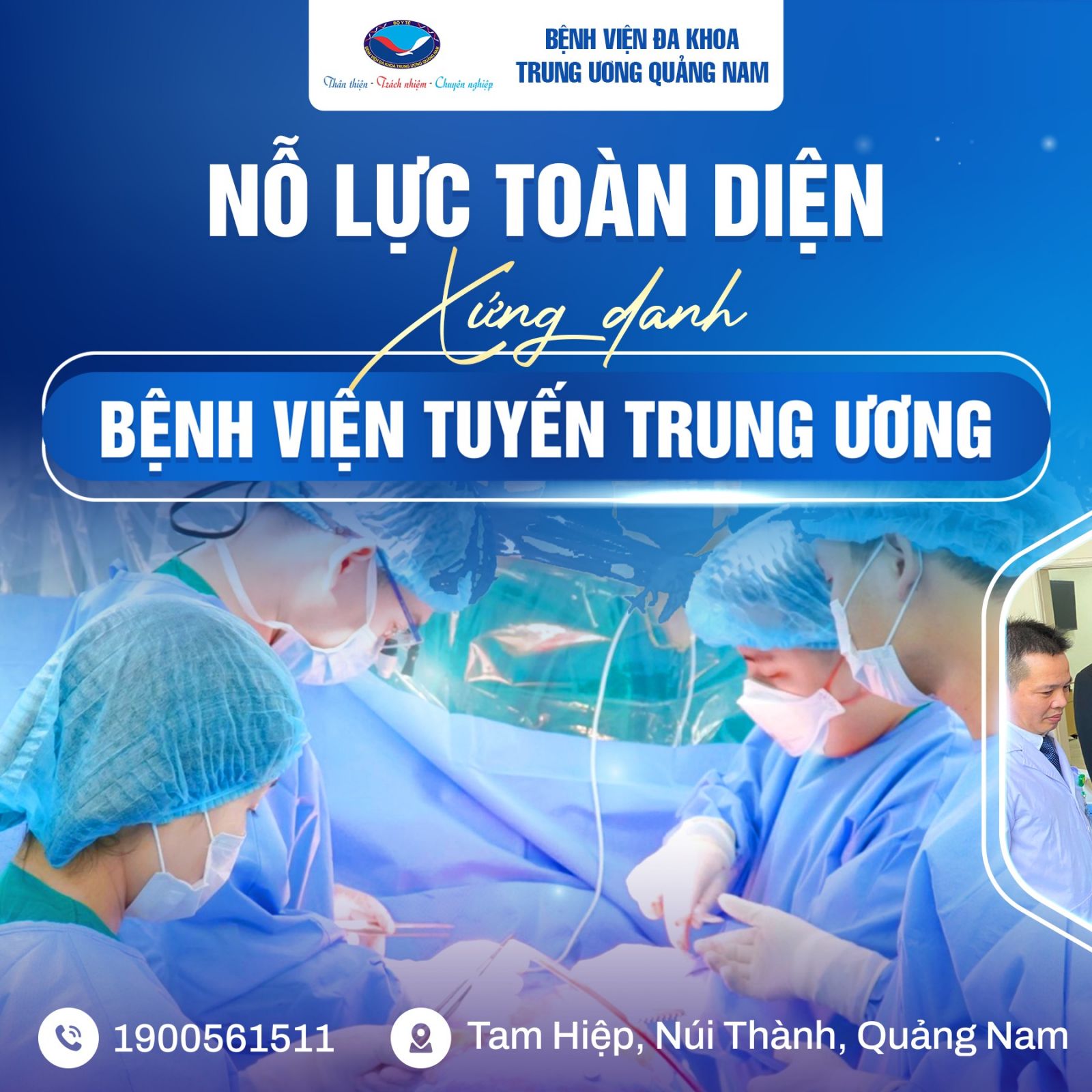 Để nhận được tư vấn và thăm khám tại Bệnh viện Đa khoa Trung ương Quảng Nam, quý khách có thể nhanh chóng đặt hẹn qua hotline: 1900 561511.