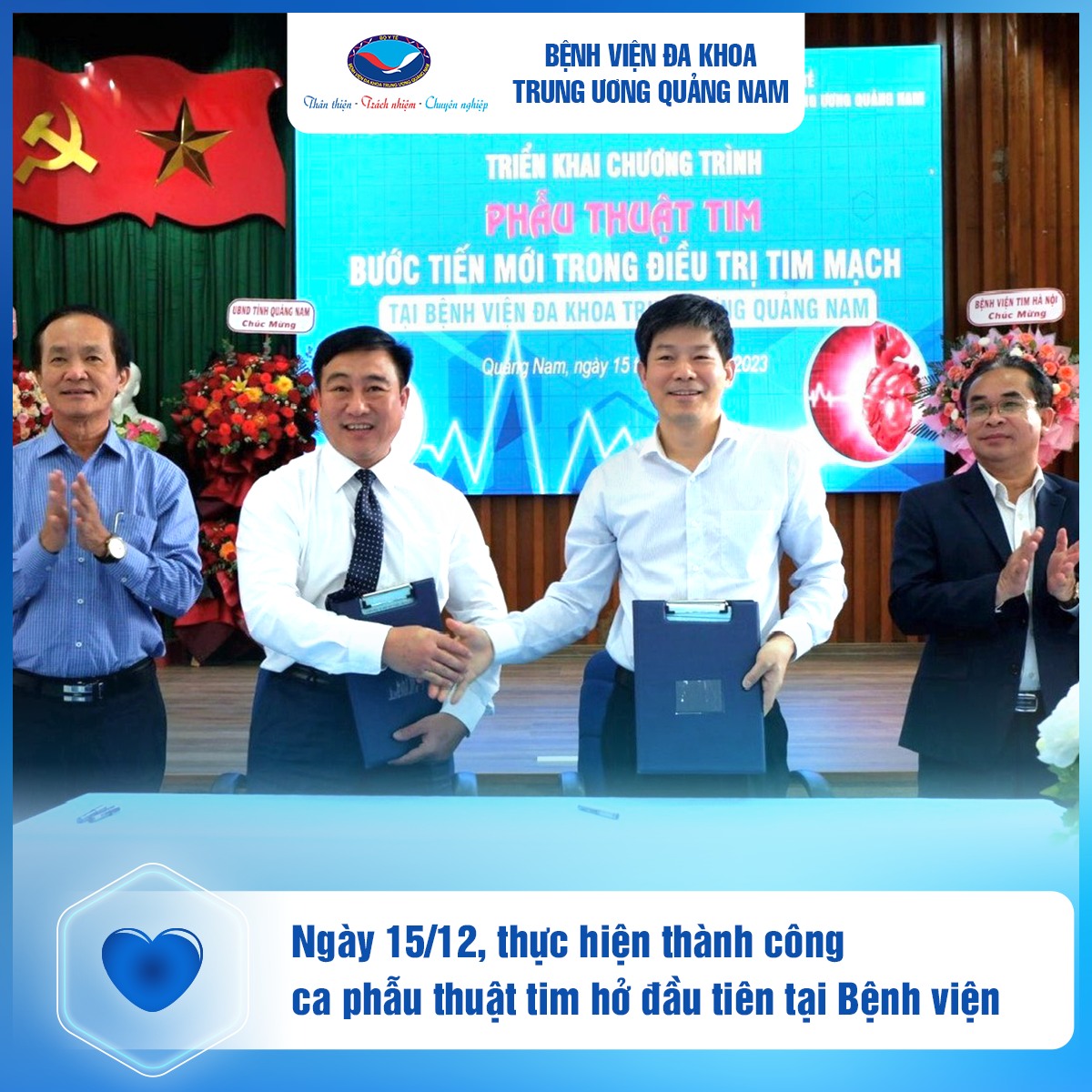 Ngày 15/12 vừa qua, Bệnh viện Đa khoa Trung ương Quảng Nam đã triển khai thành công ca phẫu thuật tim hở đầu tiên. Bệnh viện nói chung và Khoa Ngoại tim mạch - lồng ngực nói riêng, đã có những bước chuyển đầy quyết tâm hướng tới tạo điều kiện thuận lợi cho người dân địa phương trong việc khám, chữa bệnh về tim mạch mà không phải tốn kém chi phí chuyển viện, đi xa.
