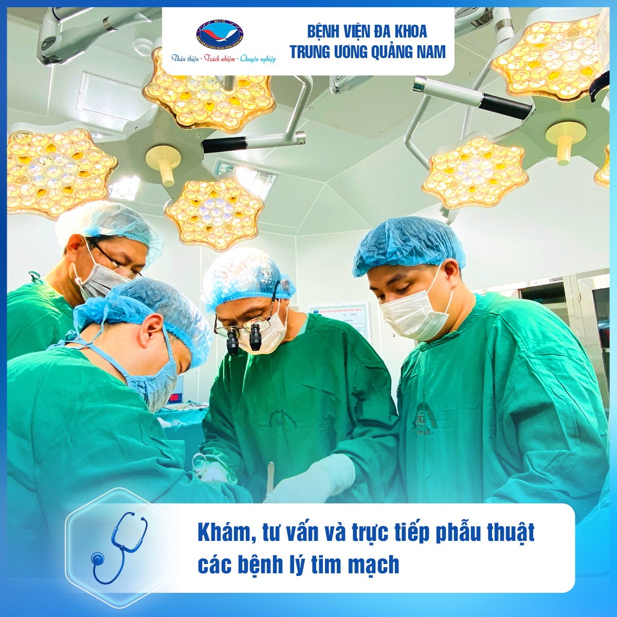 Thực hiện khám, tư vấn và trực tiếp phẫu thuật về các bệnh lý tim mạch ngay tại Bệnh viện Đa khoa Trung ương Quảng Nam.