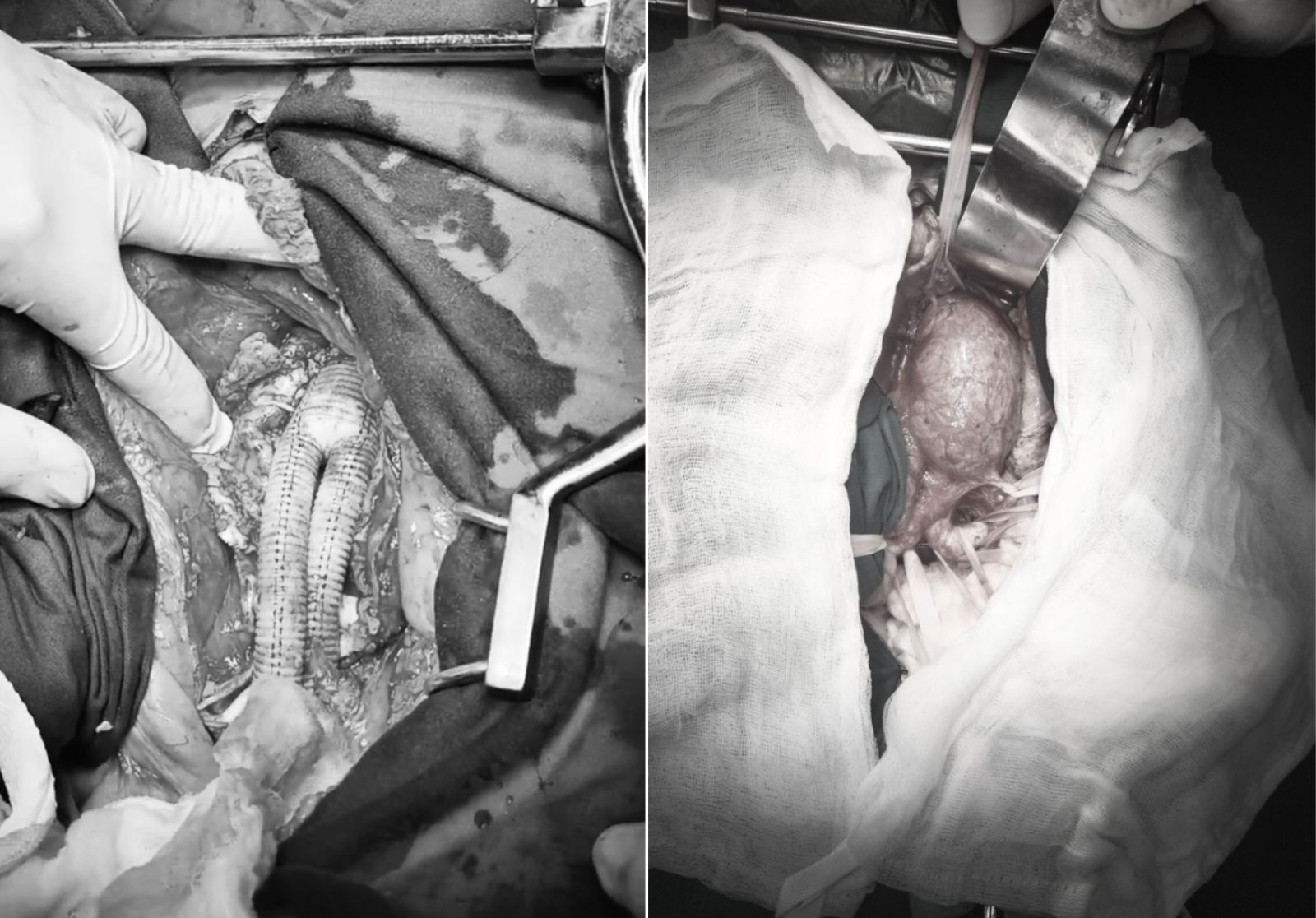 Ekip mổ thay mạch nhân tạo cho bệnh nhân phình động mạch chủ bụng, hai động mạch chậu chung.