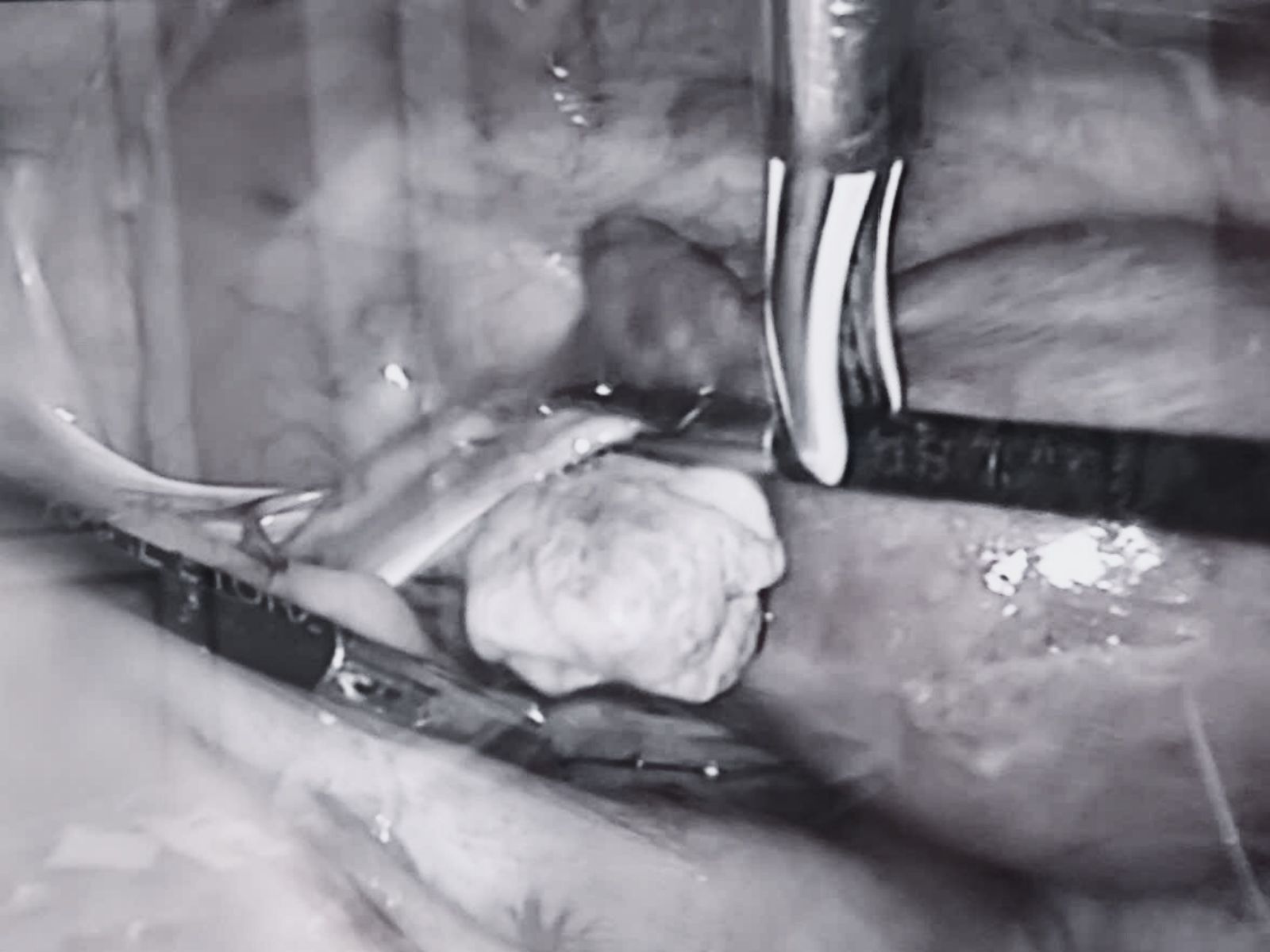 Hình ảnh trong phẫu thuật nội soi bằng dao siêu âm cho thấy các khối u lớn chèn ép bàng quang của người bệnh.