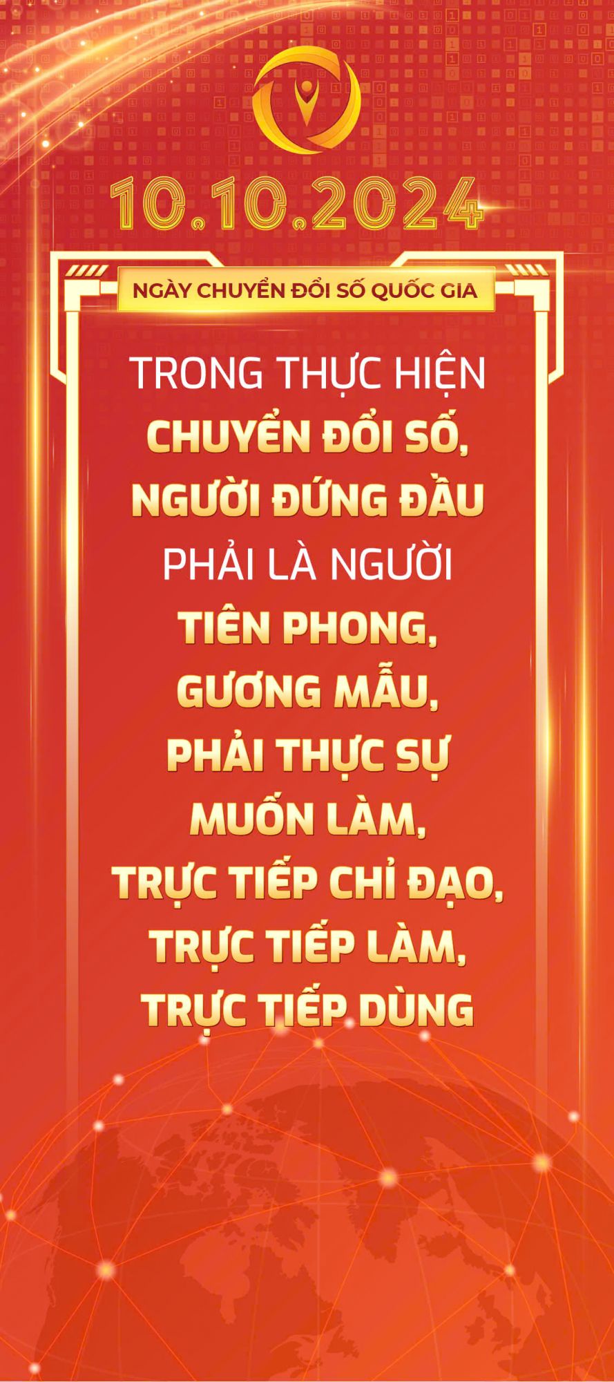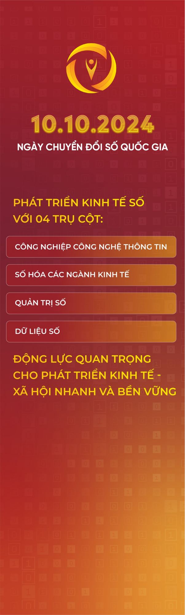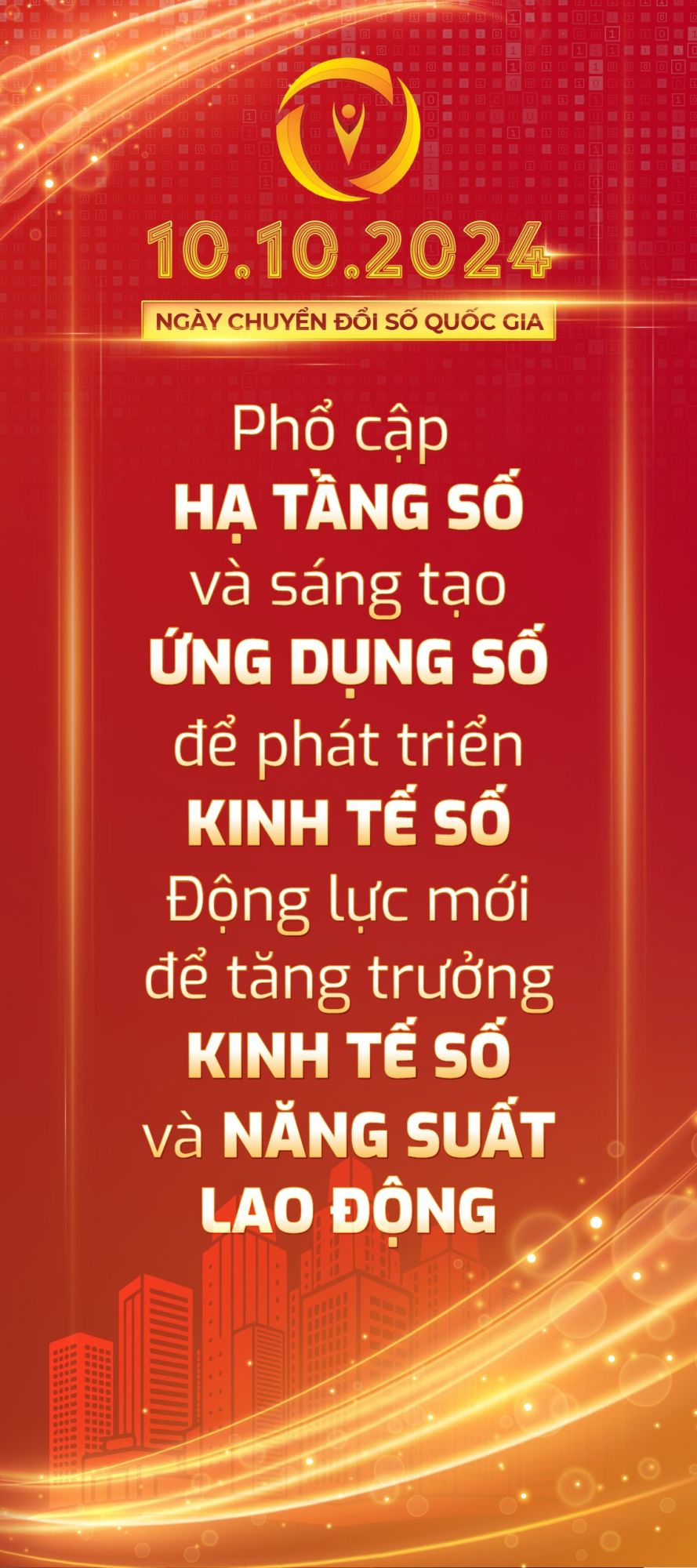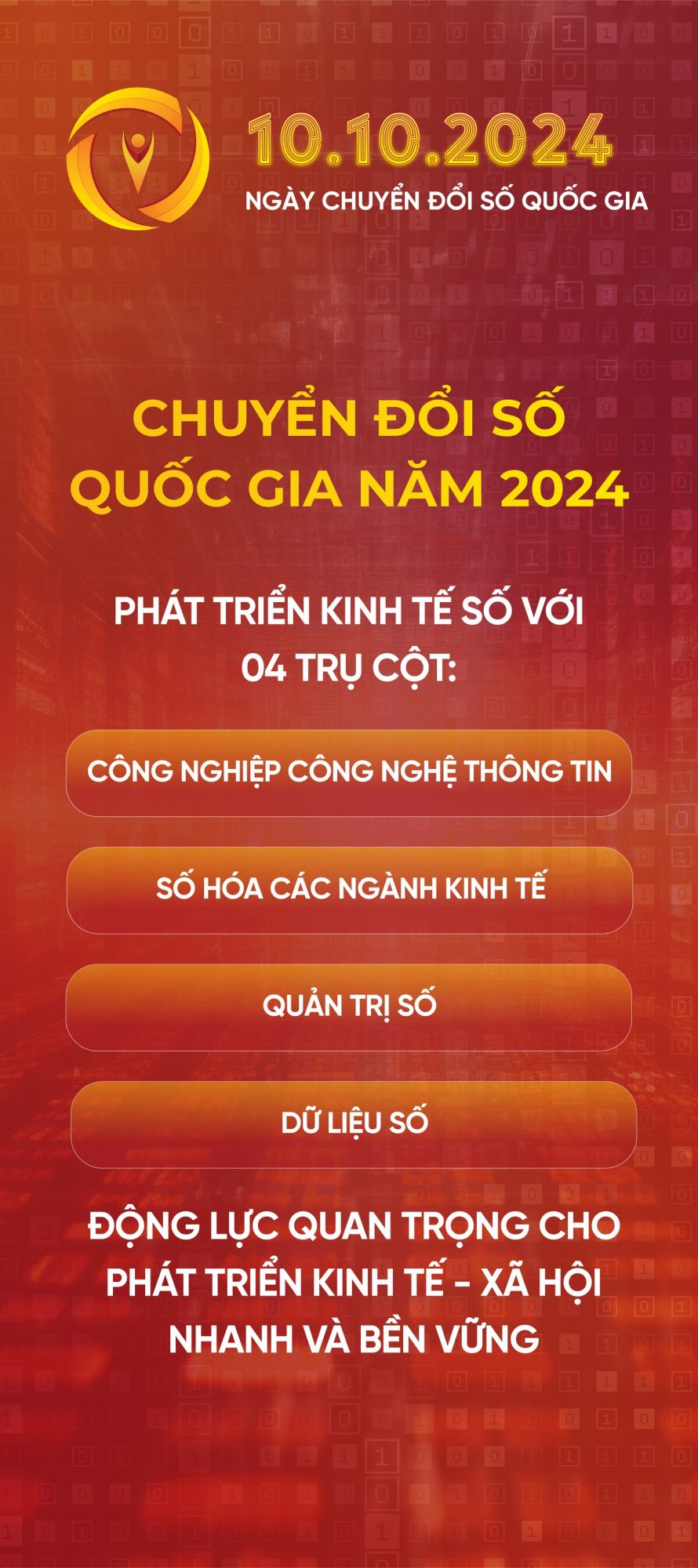 Hưởng ứng Ngày Chuyển đổi số quốc gia (10/10) năm 2024, Bộ Thông tin và Truyền thông đã xây dựng bộ nhận diện Ngày Chuyển đổi số quốc gia năm 2024.