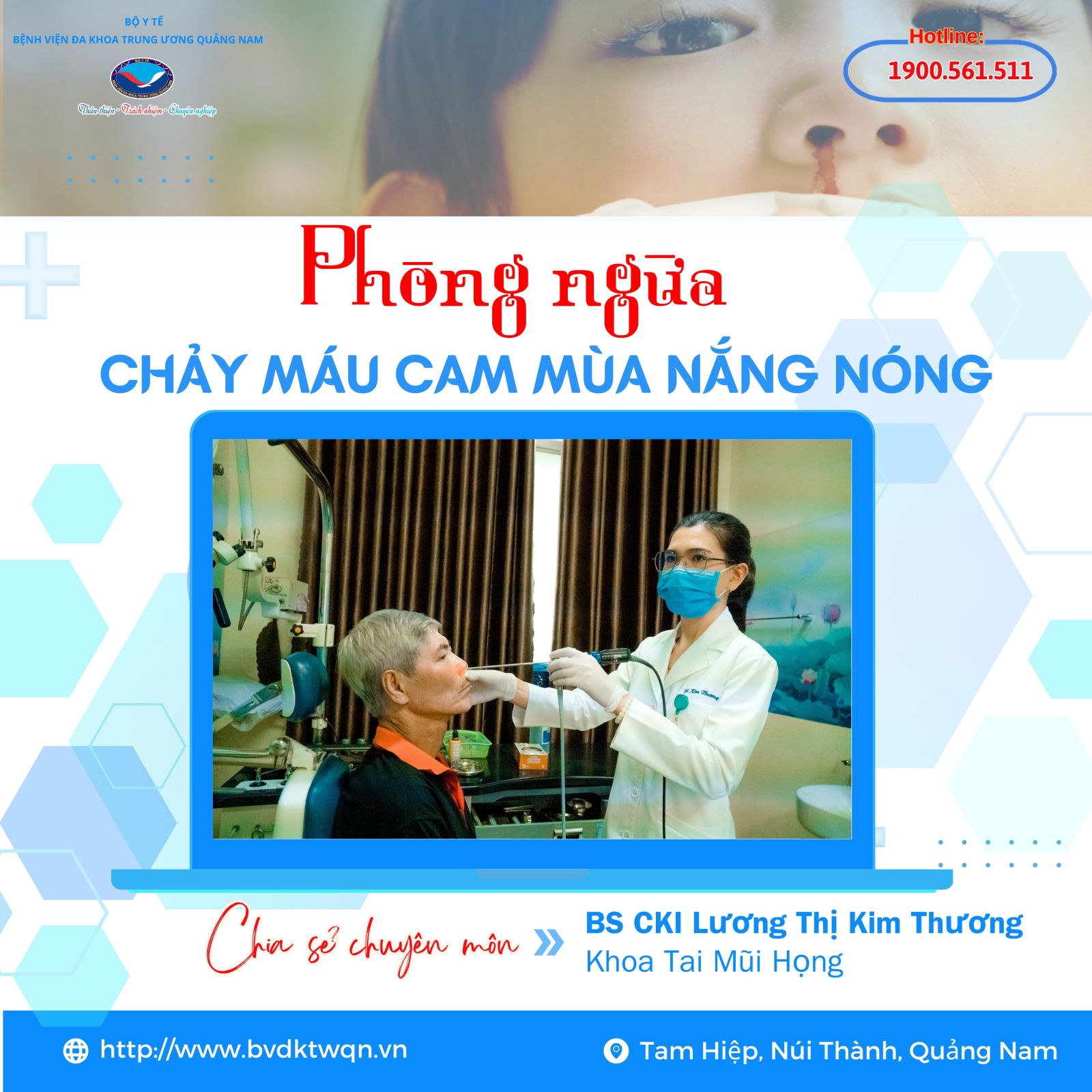 Dù chảy máu cam không phải là vấn đề sức khỏe nguy hiểm, nhưng có thể khiến một số người cảm thấy lo sợ, nhất là khi chảy máu nhiều. Vì không là triệu chứng nghiêm trọng nên chảy máu cam có thể tự điều trị tại nhà. Bài viết dưới đây được tư vấn chuyên môn bởi Bác sĩ CKI Lương Thị Kim Thương – Khoa Tai Mũi Họng, Bệnh viện Đa khoa Trung ương Quảng Nam sẽ chia sẻ cho bạn một vài cách phòng ngừa chảy máu cam thời tiết nắng nóng mùa hè.