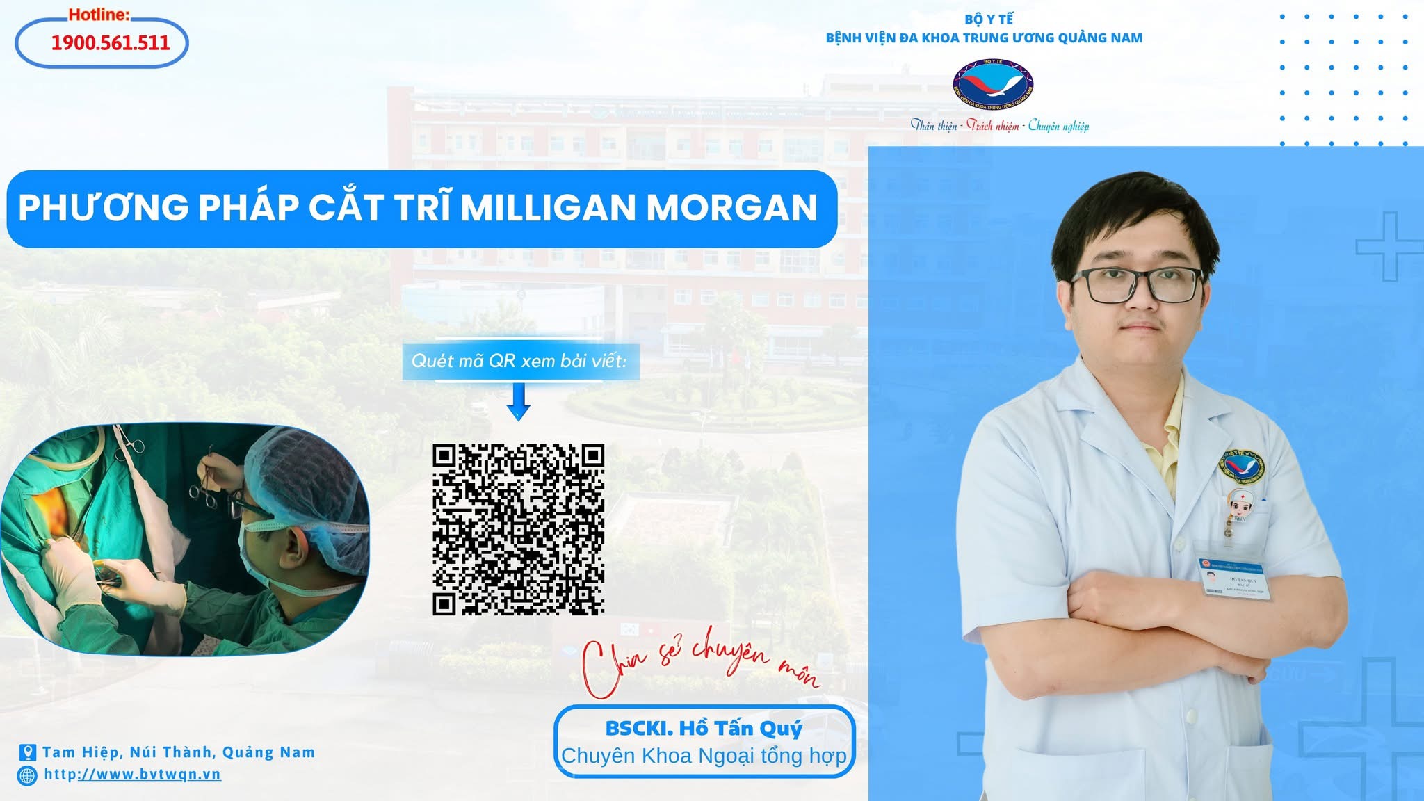Phương pháp phẫu thuật cắt trĩ Milligan Morgan loại bỏ búi trĩ an toàn, nhanh chóng được thực hiện bởi các bác sĩ chuyên khoa Ngoại tổng hợp, Bệnh viện Đa khoa Trung ương Quảng Nam.