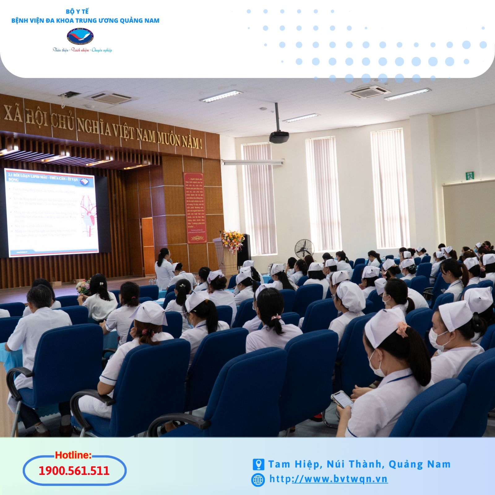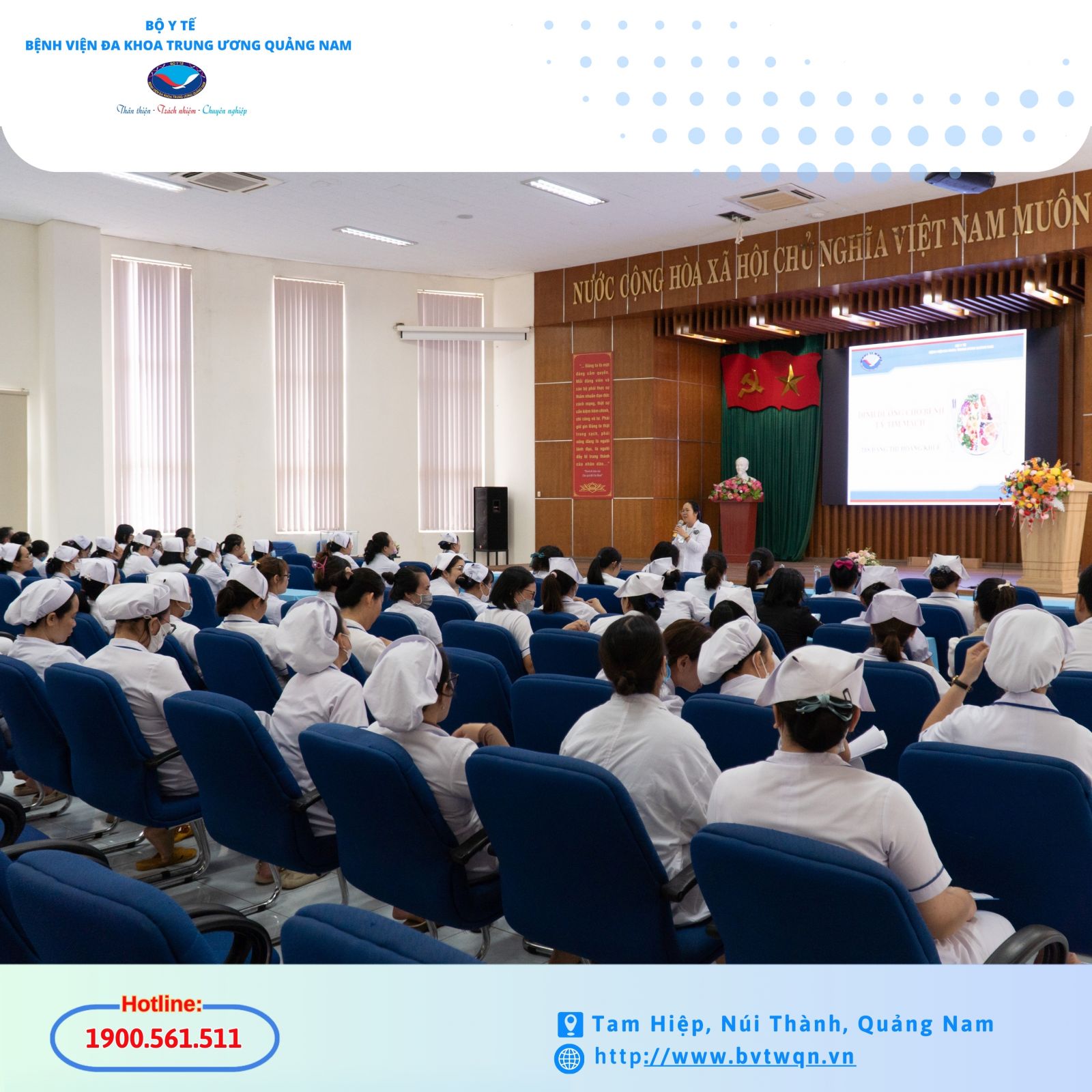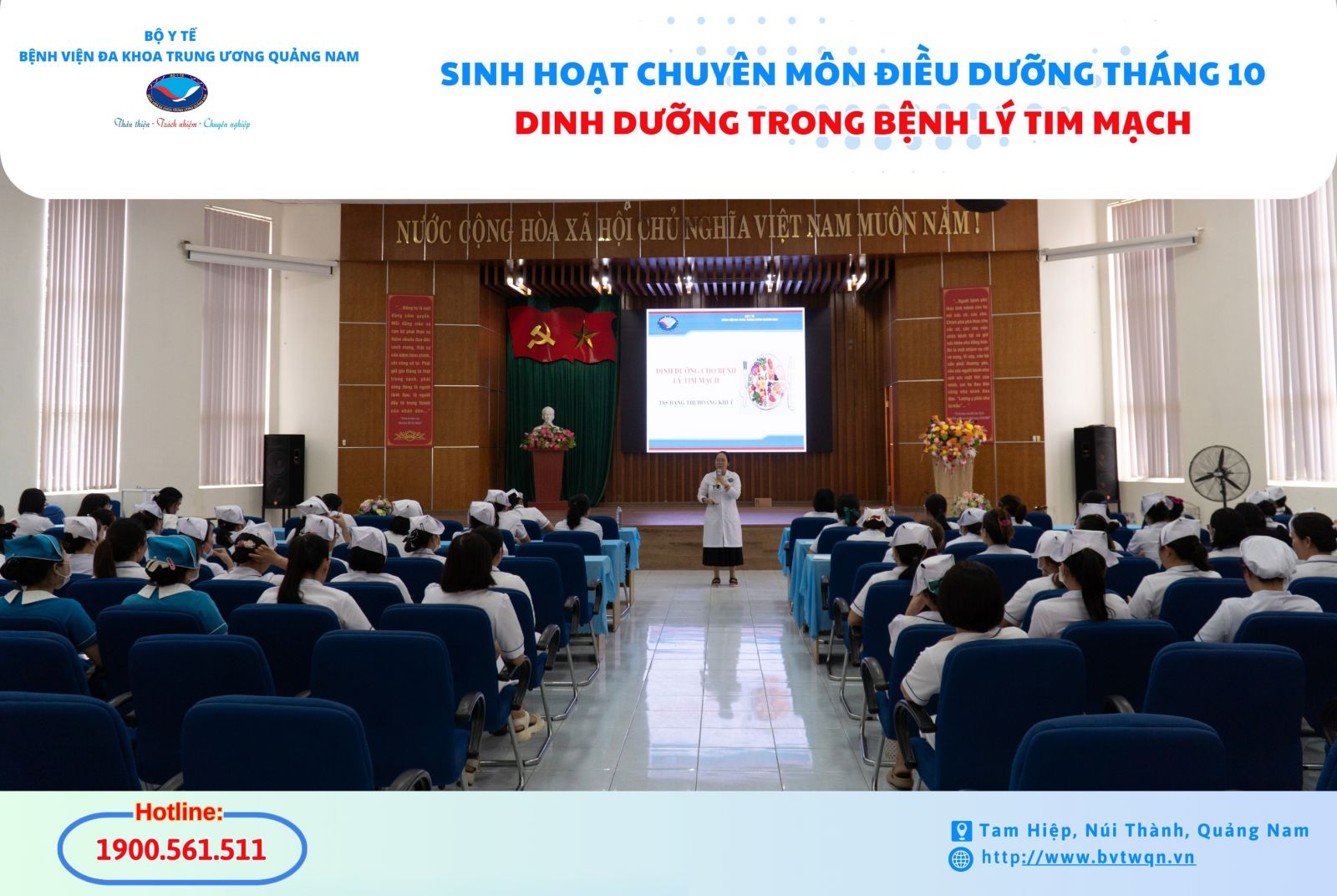 Chiều nay 9/10, Bệnh viện Đa khoa Trung ương Quảng Nam tổ chức sinh hoạt chuyên môn Điều dưỡng tháng 10 với chuyên đề về Dinh dưỡng trong bệnh lý tim mạch.