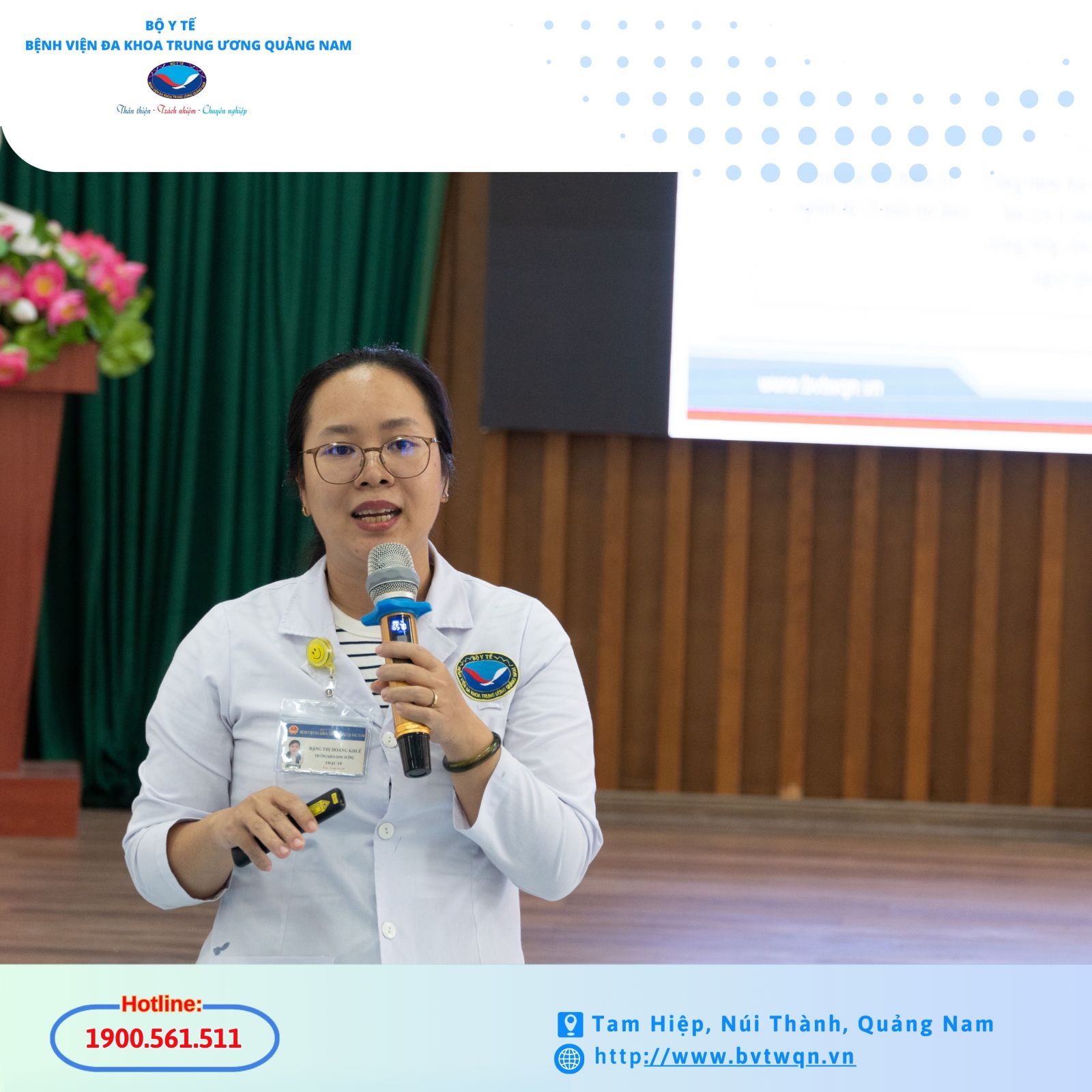 Giảng viên ThS. Đặng Thị Hoàng Khuê, Trưởng Khoa Dinh dưỡng trình bày bài giảng.