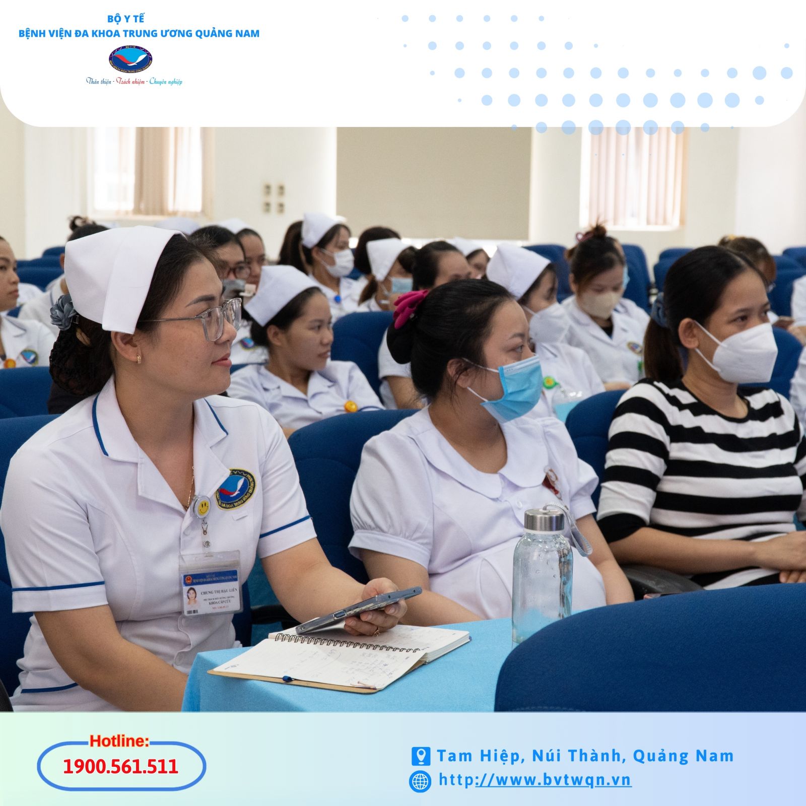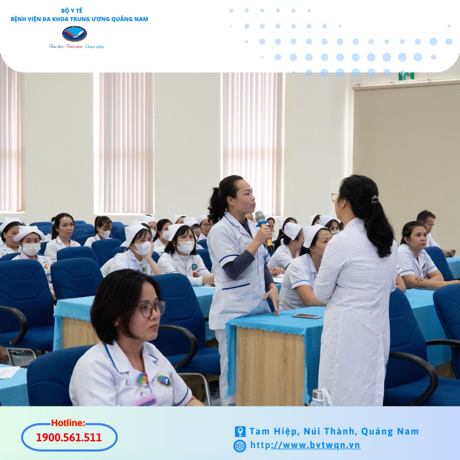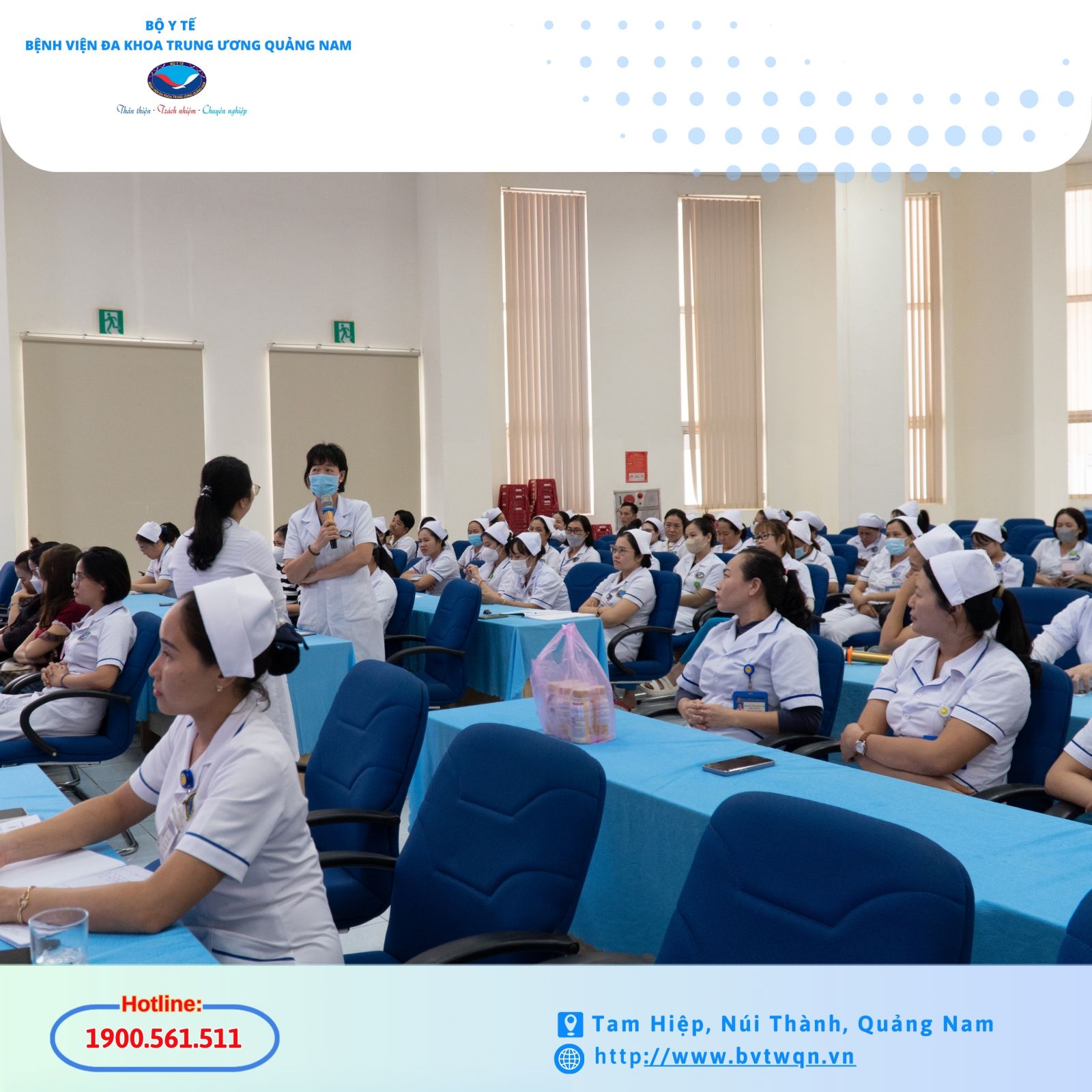 Chủ trì buổi sinh hoạt là CN Phan Trần Giang Hòa, Trưởng phòng Điều dưỡng cùng các học viên là điều dưỡng, hộ sinh, kỹ thuật viên trong toàn viện. Đây là hoạt động tổ chức hằng tháng của Phòng Điều dưỡng nhằm nâng cao chất lượng chăm sóc sức khỏe và cập nhật kiến thức chuyên môn cho đội ngũ điều dưỡng của Bệnh viện.