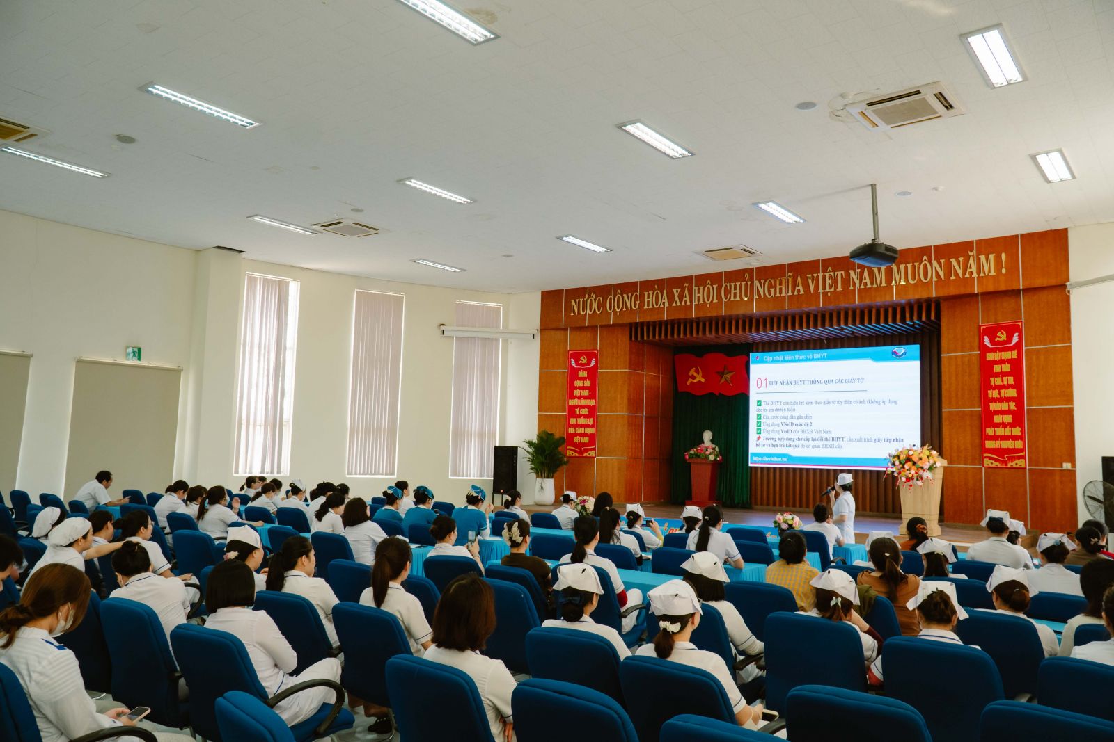 Chiều ngày 15/4, Bệnh viện Việt – Hàn Đà Nẵng tổ chức buổi sinh hoạt chuyên môn hệ Điều dưỡng chuyên đề tháng 4/2026 tại Hội trường lớn Bệnh viện với sự tham dự của đông đảo điều dưỡng trưởng, điều dưỡng, hộ sinh và kỹ thuật viên các khoa lâm sàng.