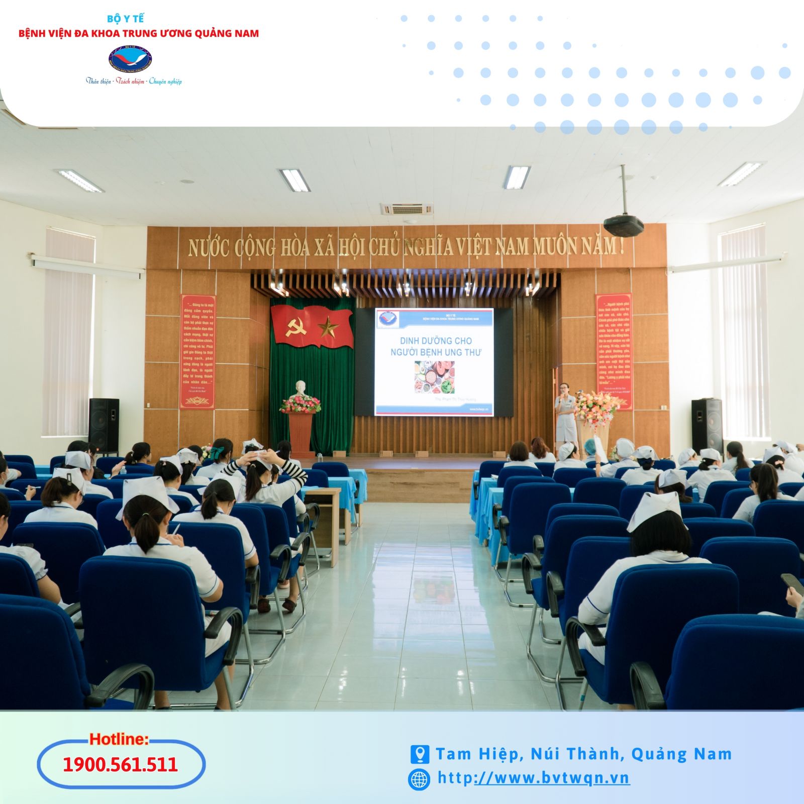 Chiều nay 1/8, Bệnh viện Đa khoa Trung ương Quảng Nam tổ chức sinh hoạt chuyên môn hệ Điều dưỡng chuyên đề tháng 7 năm 2024 với chủ đề: “Dinh dưỡng cho Người bệnh ung thư”.