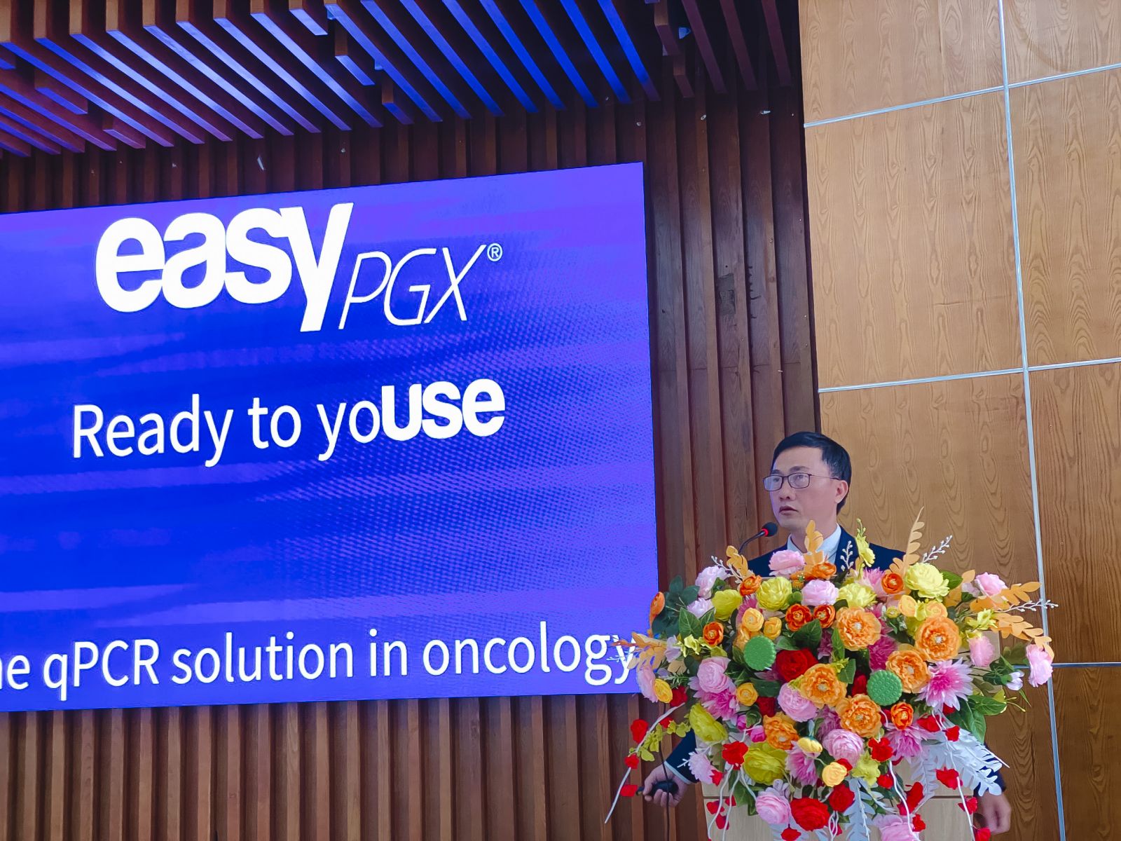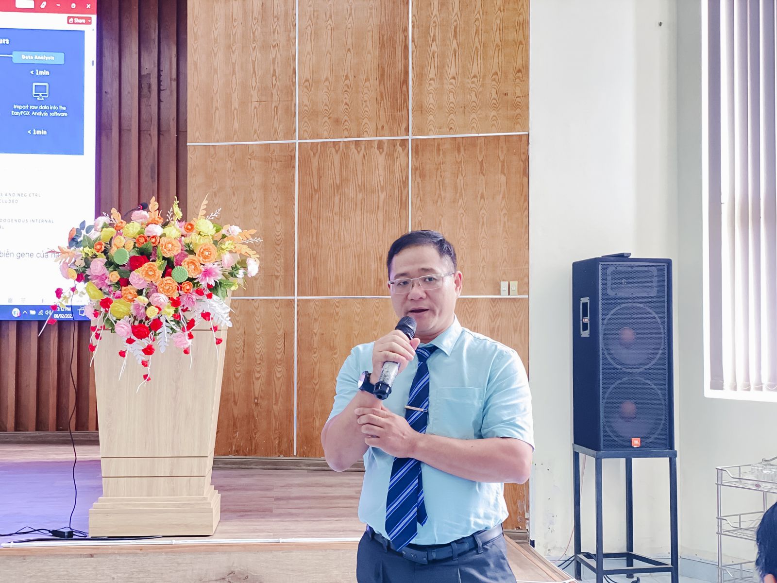 BS. Lê Lâm Tuấn mang đến buổi sinh hoạt gồm 2 phần chính là: Thông tin về xét nghiệm phát hiện đột biến gene ung thư bằng phương pháp RT-PCR Diatech Pharmacogenetics; Giải pháp thiết bị Y tế của Getz Healthcare Vietnam (GHC) đồng hành cùng Bệnh viện.