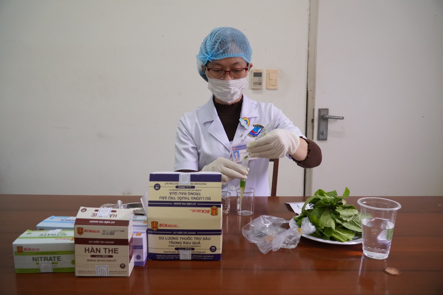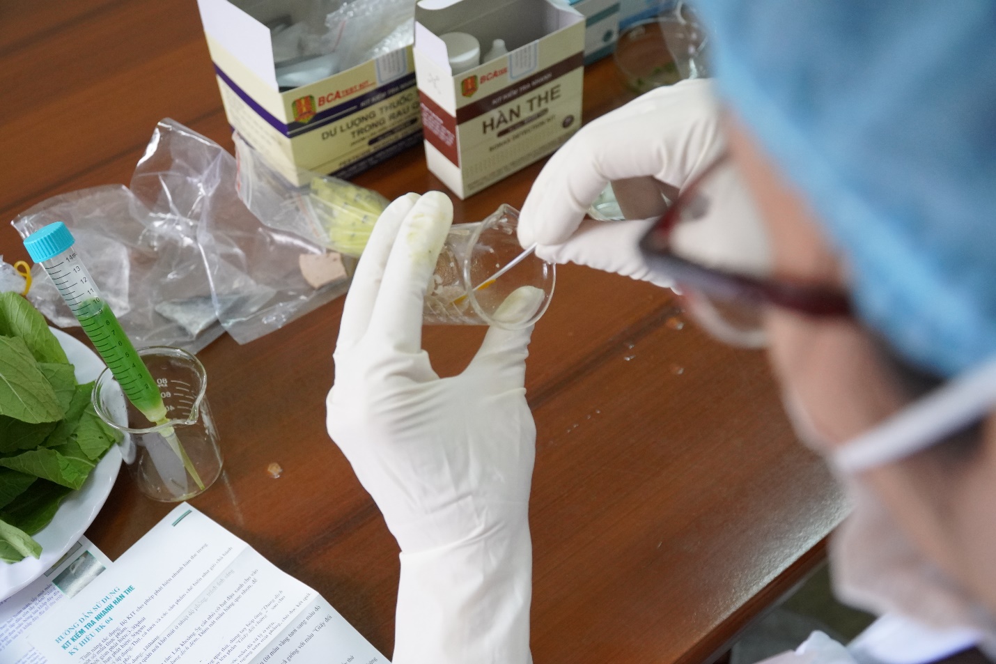 Khoa Dinh dưỡng thực hiện test dư lượng thuốc trừ sâu trong rau cải.
