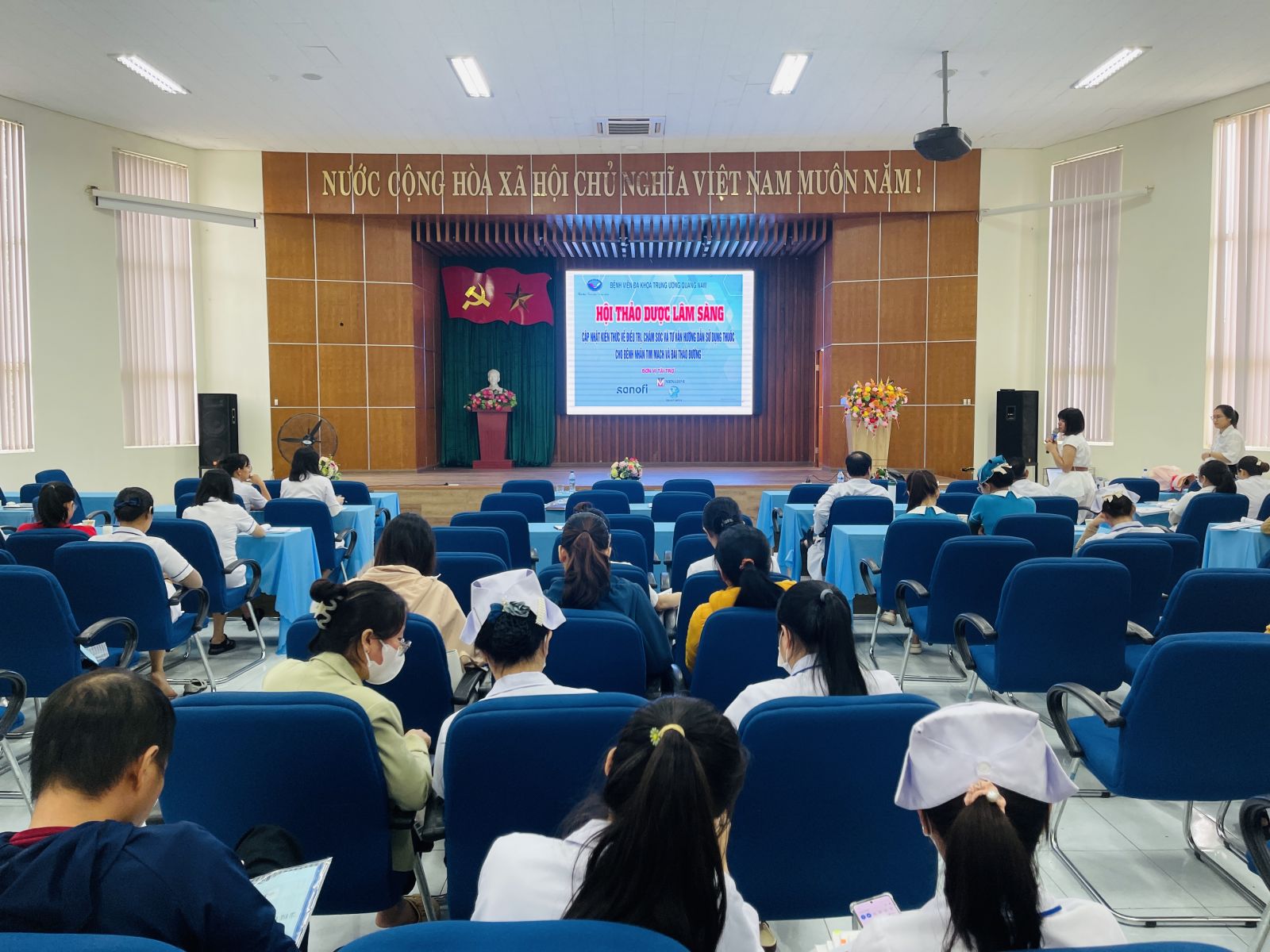 Sáng nay, ngày 22/11/2023 Bệnh viện ĐKTW Quảng Nam đã tổ chức lớp đào tạo Dược lâm sàng “Cập nhật kiến thức về điều trị, chăm sóc và tư vấn sử dụng thuốc cho bệnh nhân tim mạch và đái tháo đường” cho hơn 150 học viên là các bác sĩ, dược sĩ và điều dưỡng Bệnh viện.
