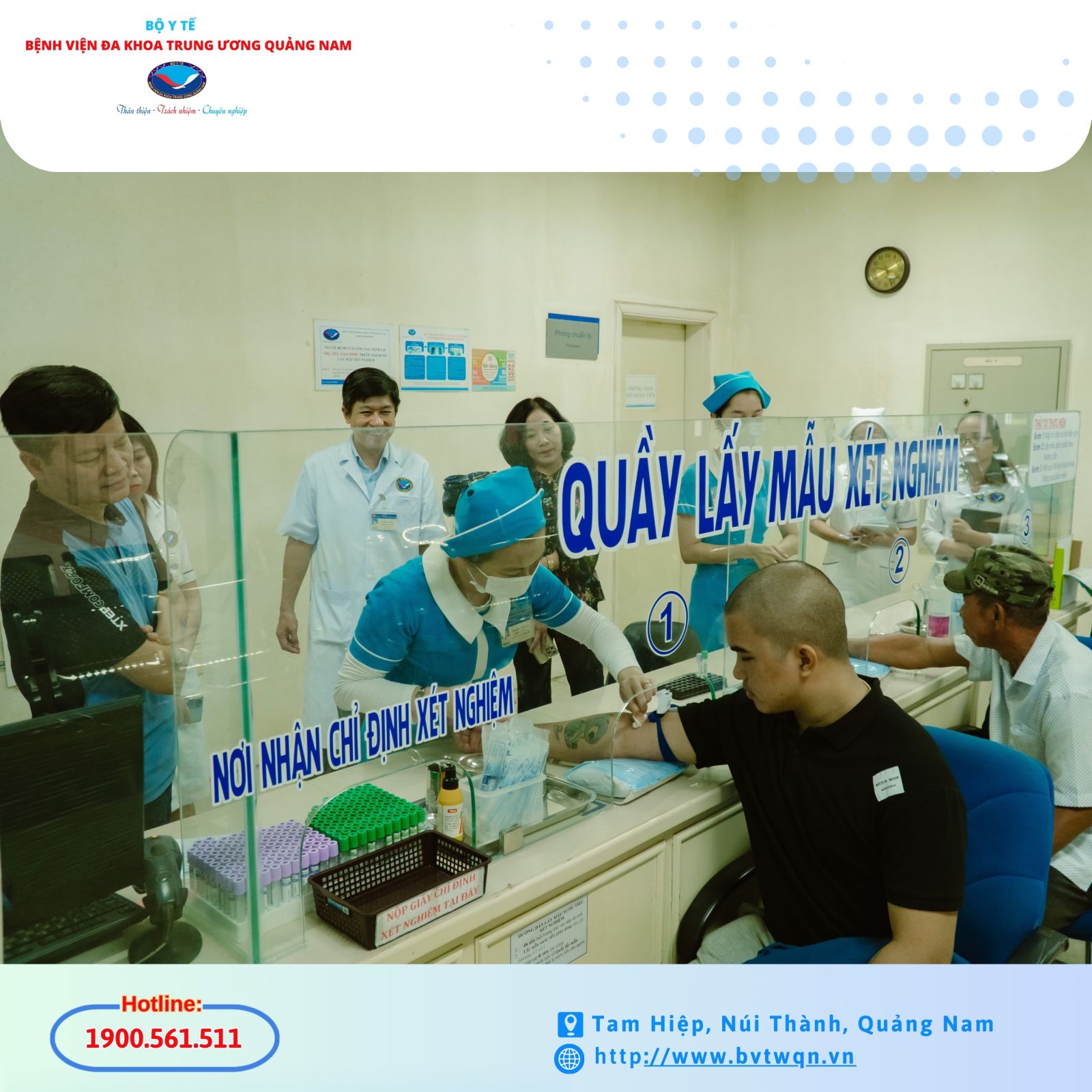 Năm 2019, phòng xét nghiệm thuộc Khoa Hóa sinh của Bệnh viện Đa khoa Trung ương Quảng Nam được Văn phòng Công nhận chất lượng - Bộ Khoa học & Công nghệ cấp chứng nhận ISO 15189 và duy trì từ đó đến nay. Theo quy định, các phòng xét nghiệm cần được đánh giá định kỳ 1 năm/lần để đảm bảo mọi tiêu chuẩn đáp ứng các tiêu chí đề ra.
