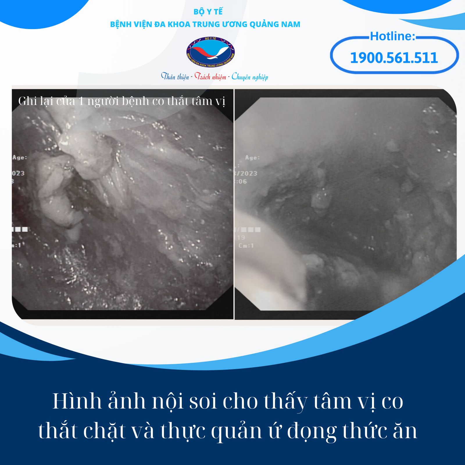 Hình ảnh nội soi của 1 người bệnh bị tâm vị co thắt.