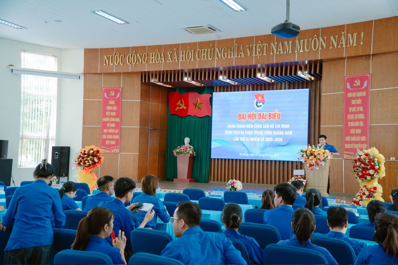 DKTWQNO - Ngày 24/9, Đại hội Đoàn TNCS Hồ Chí Minh Bệnh viện Đa khoa Trung ương Quảng Nam lần thứ VI, nhiệm kỳ 2025 - 2030 diễn ra trọng thể với hai phiên làm việc. Đại hội khẳng định sức trẻ, y đức và khát vọng cống hiến của thế hệ trẻ ngành y trong giai đoạn mới.