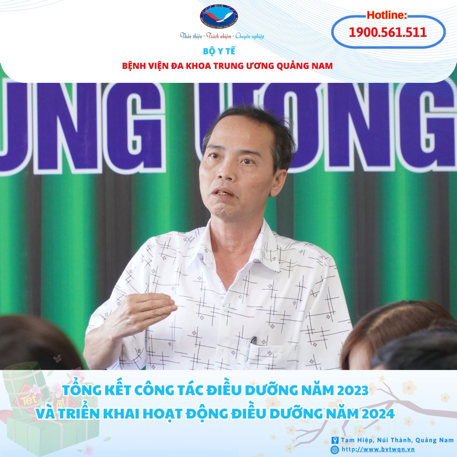 Phát biểu tại Hội nghị, thay mặt lãnh đạo Bệnh viện, BSCKII. Trần Dương Quân, Phó Giám đốc Bệnh viện - Chủ tịch Hội đồng Điều dưỡng Bệnh viện đã ghi nhận và biểu dương những thành tích nổi bật mà đội ngũ điều dưỡng đã đạt được, đóng góp vào thành tích chung của Bệnh viện trong năm 2023.