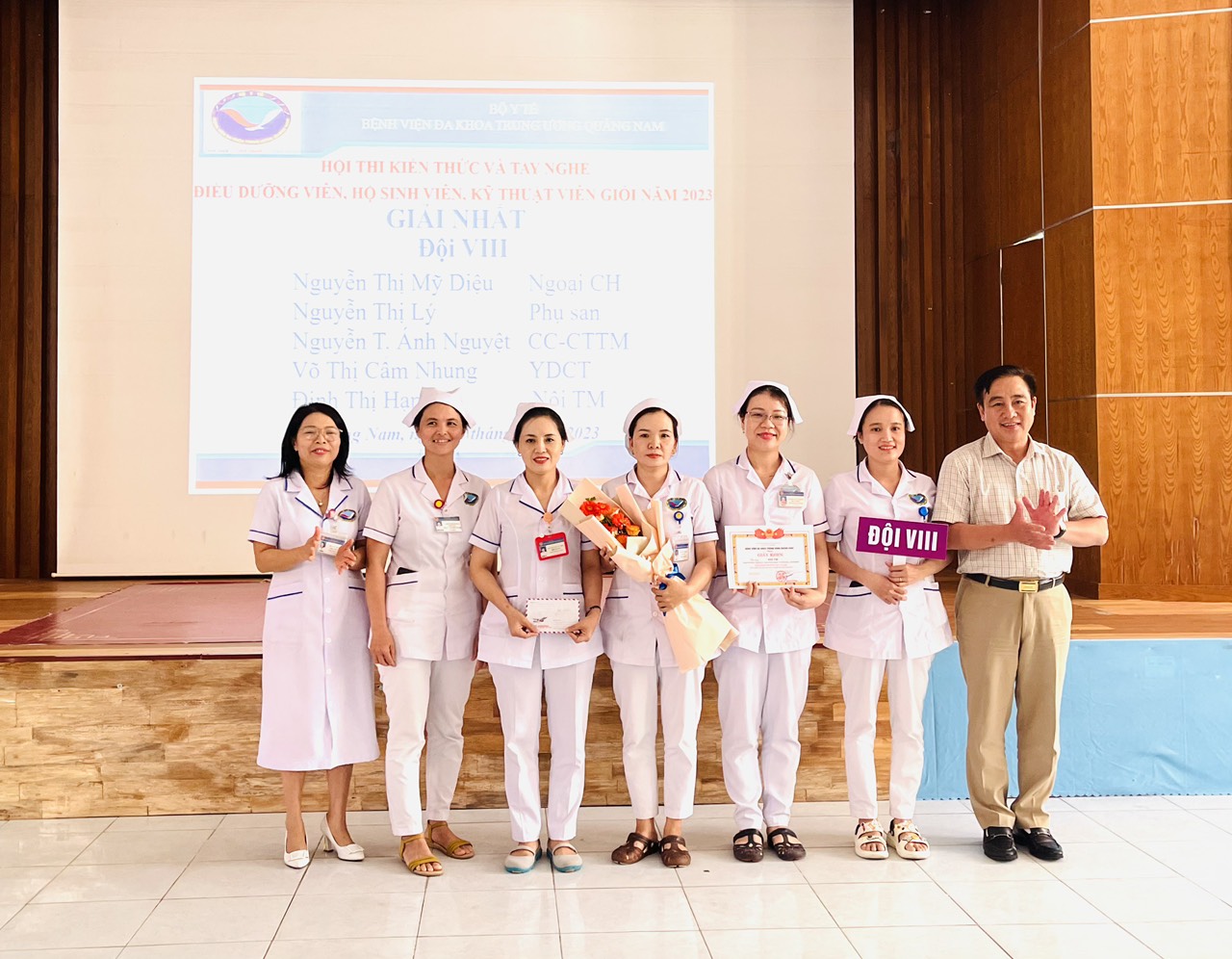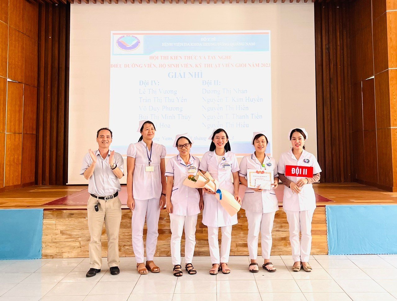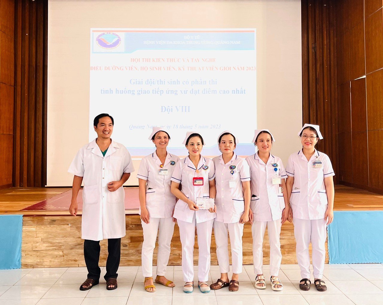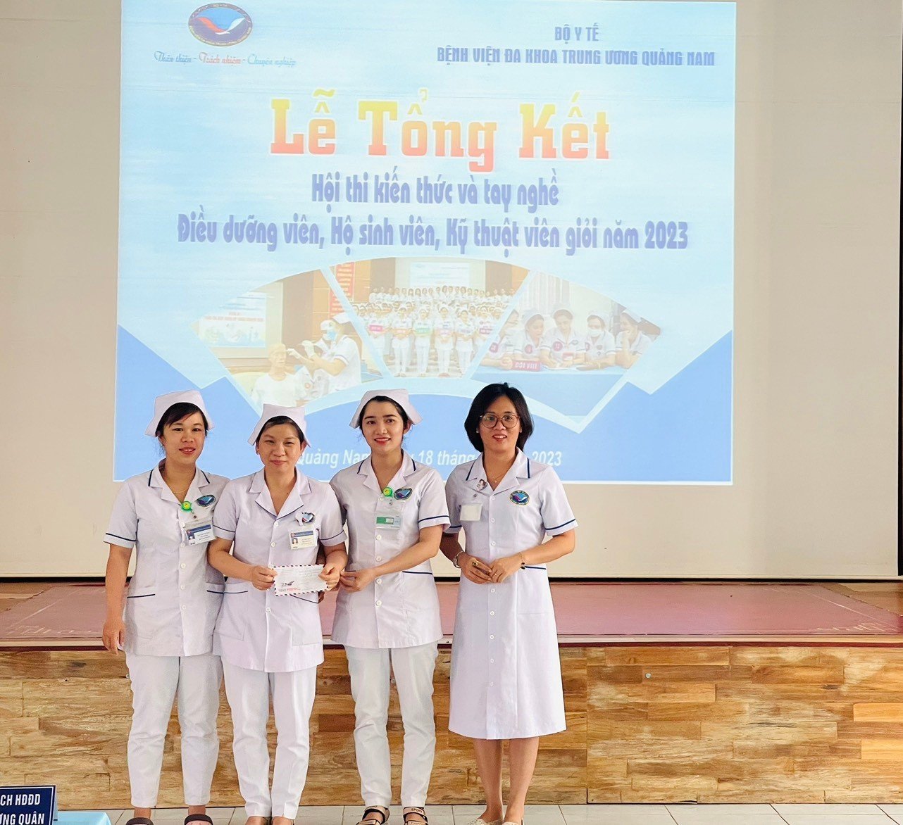 Chiều nay, ngày 18/5/2023 Bệnh viện Đa khoa Trung ương Quảng Nam đã tổ chức tổng kết và trao giải cuộc thi kiến thức và tay nghề Điều dưỡng viên, Hộ sinh viên, Kỹ thuật viên giỏi năm 2023.