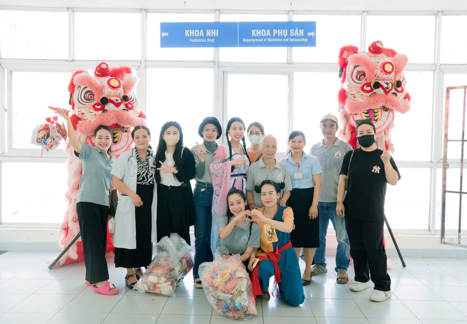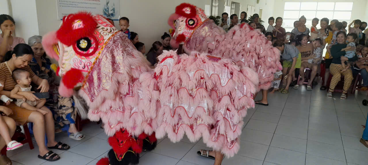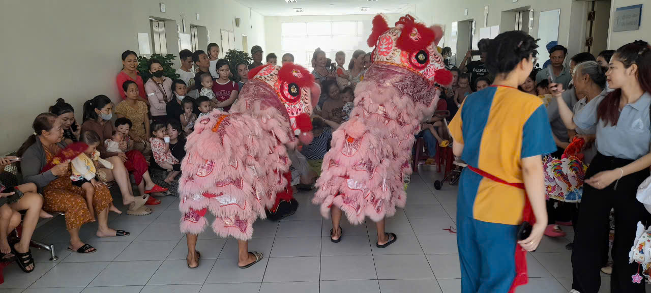 CLB Thiện Nguyện huyện Núi Thành múa lân tại sảnh khoa Nhi.