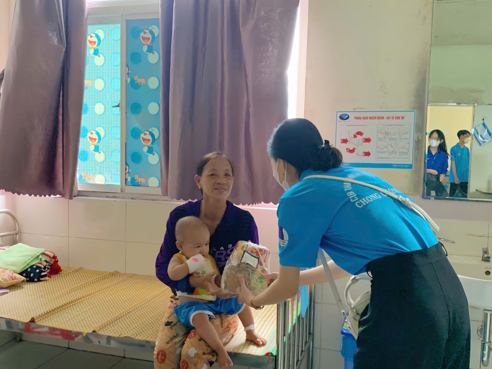 CLB thiện nguyện Chong chóng xanh tặng quà cho các em nhỏ tại giường bệnh.