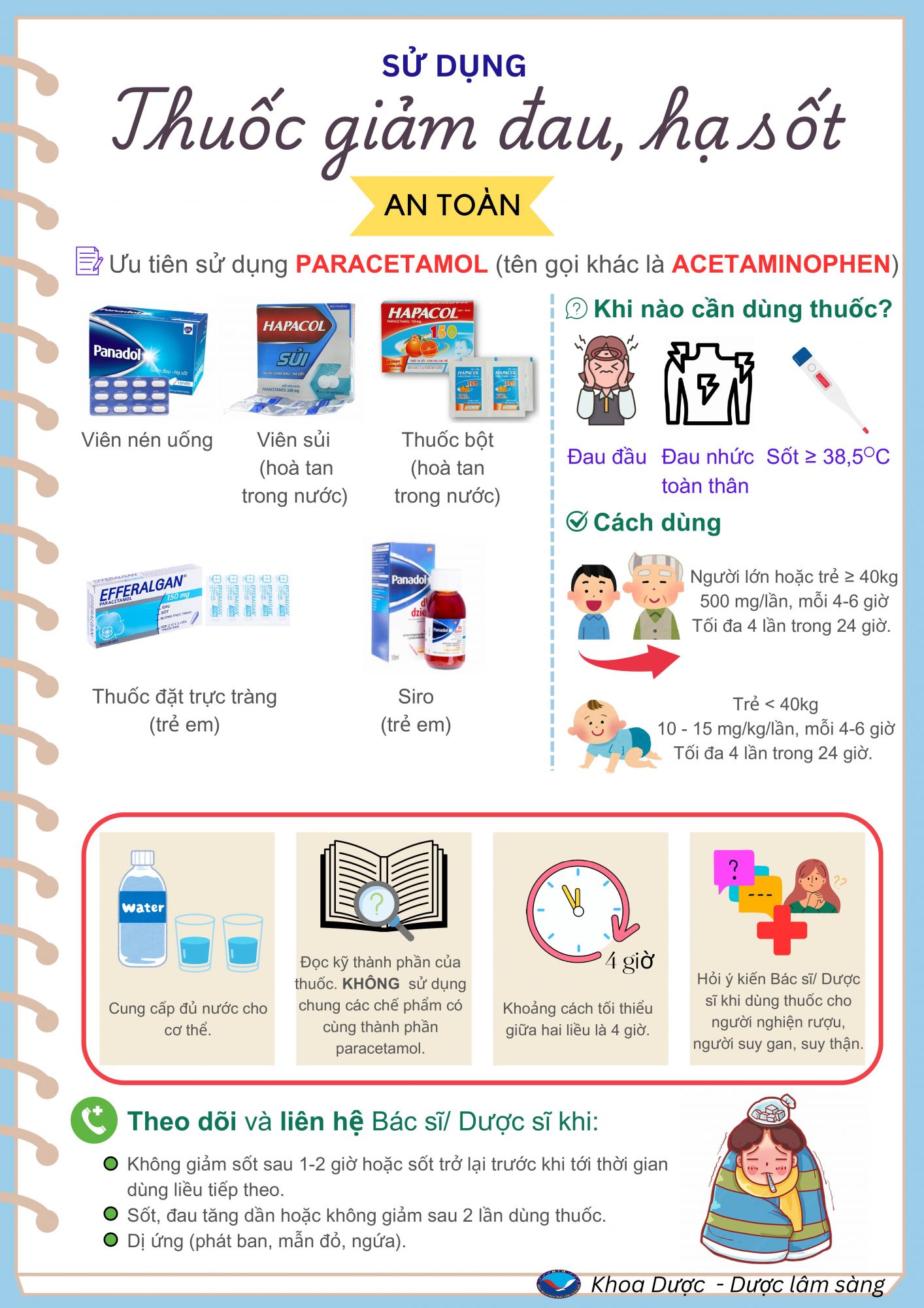 - Tránh dùng nhiều sản phẩm chứa paracetamol cùng lúc: Paracetamol thường có trong nhiều loại thuốc cảm cúm, thuốc giảm đau khác nhau. Vì vậy, cần kiểm tra kỹ thành phần thuốc trước khi sử dụng để tránh dùng quá liều.