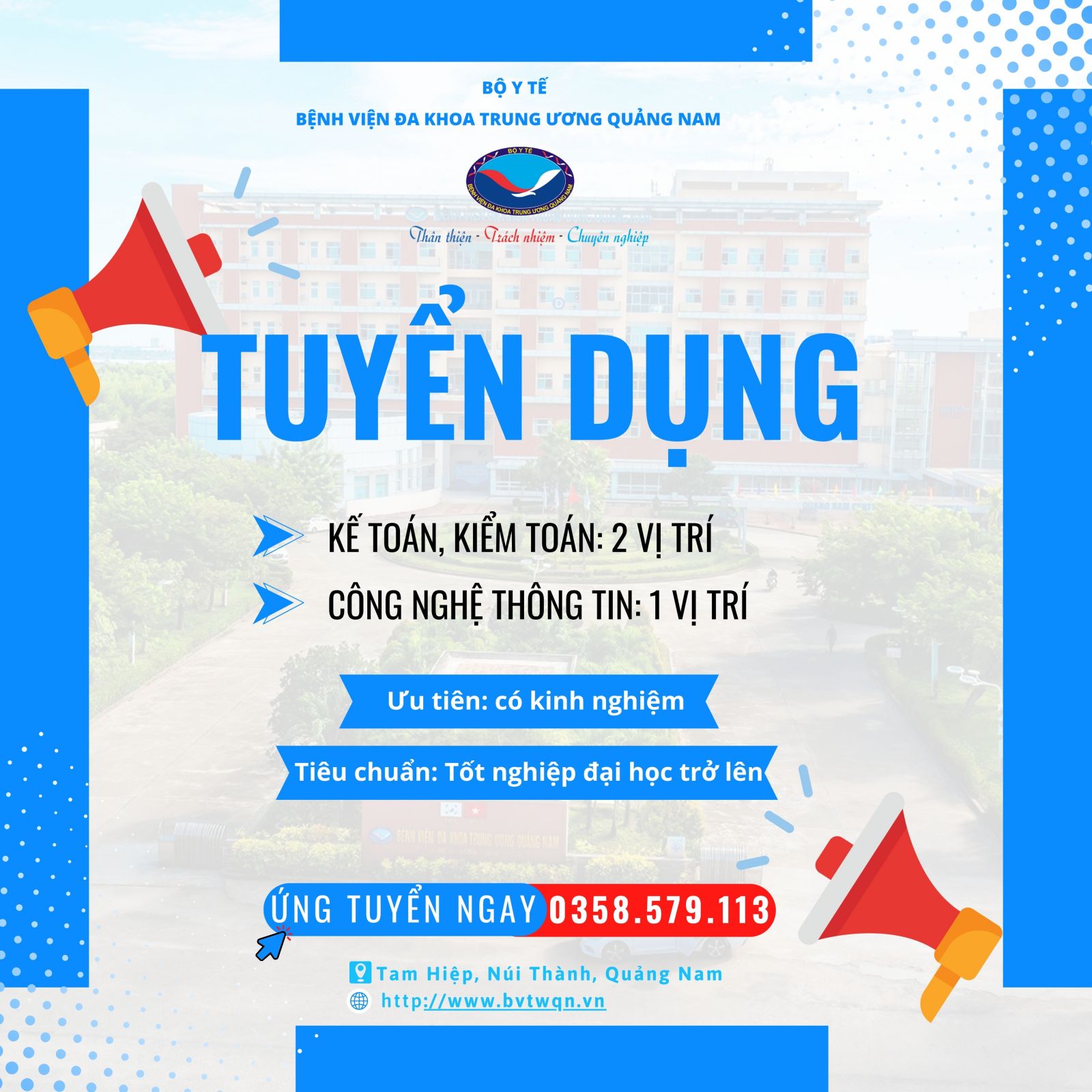 Bệnh viện Đa khoa Trung ương Quảng Nam thông báo tuyển dụng các vị trí sau: