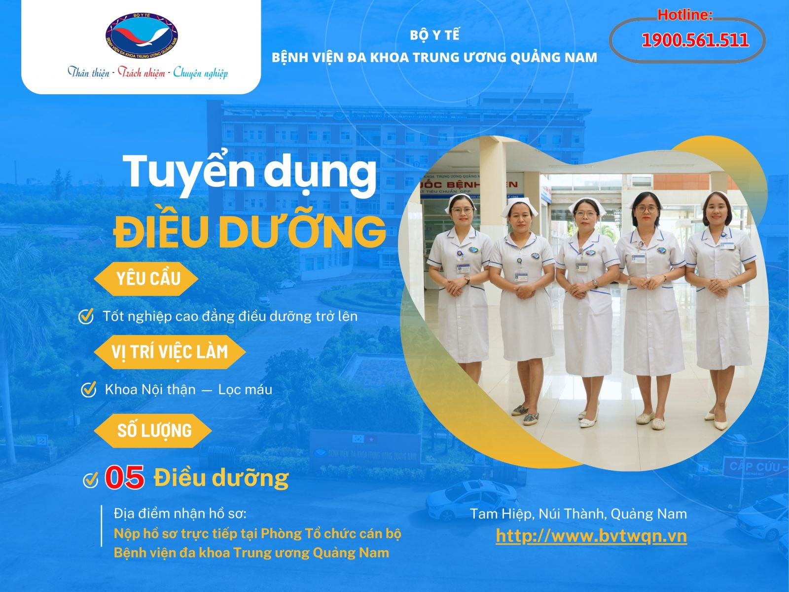 TUYỂN DỤNG ĐIỀU DƯỠNG KHOA NỘI THẬN - LỌC MÁU SỐ LƯỢNG: 05