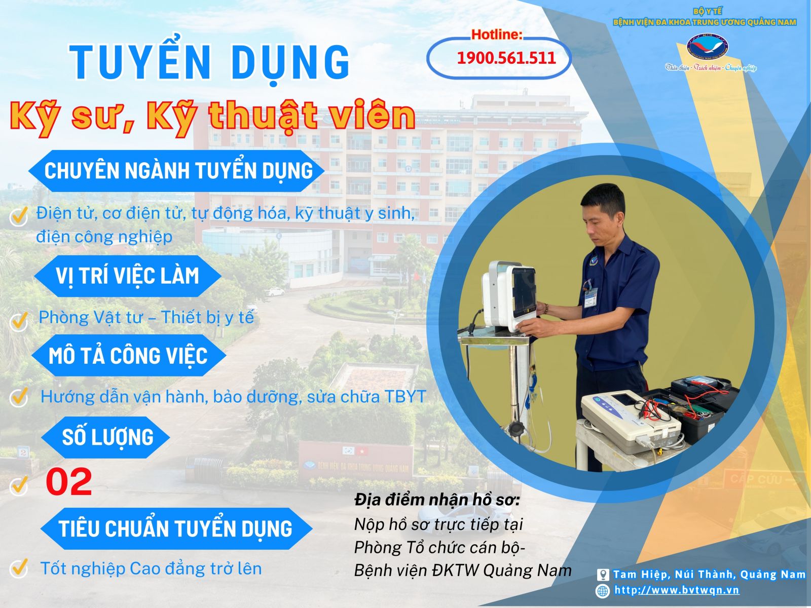 Phòng Vật tư – Thiết bị y tế, Bệnh viện Đa khoa Trung ương Quảng Nam đang cần tuyển dụng trong tháng 4 năm 2024 như sau: