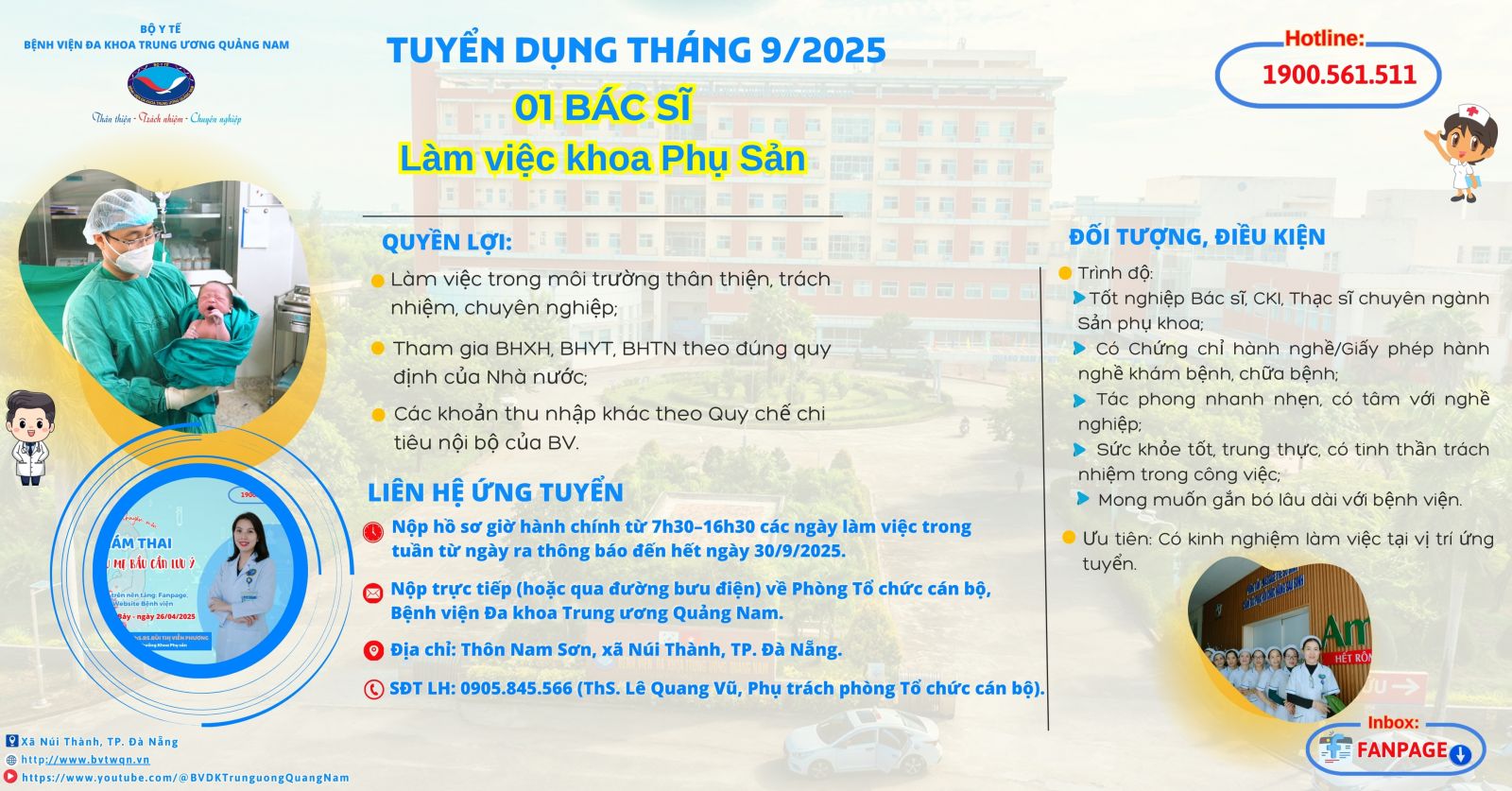 Tuyển dụng tháng 9 Bệnh viện Đa khoa Trung ương Quảng Nam: 01 Bác sĩ khoa Phụ sản