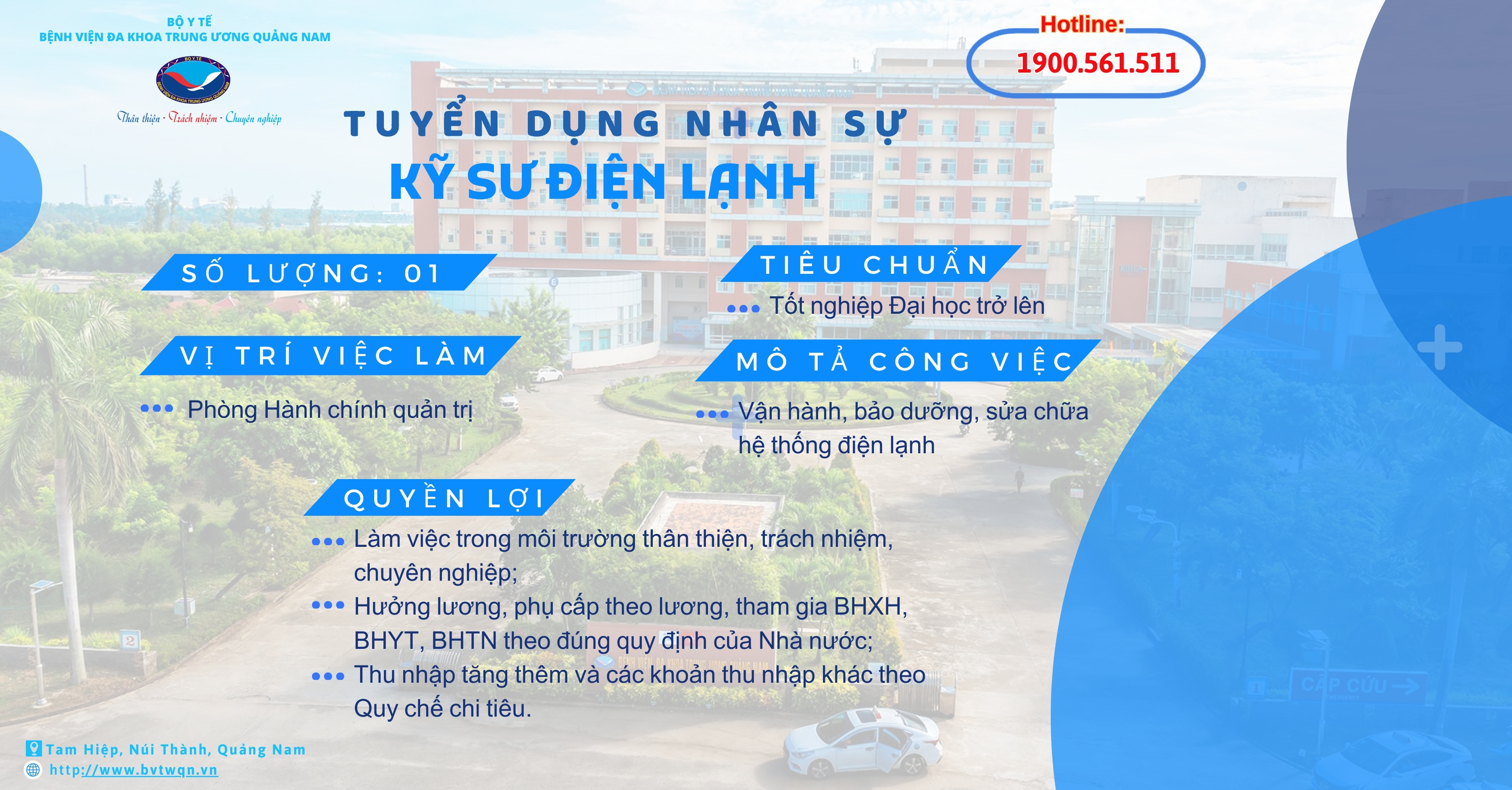 Bệnh viện Đa khoa Trung ương Quảng Nam Thông báo tuyển dụng vị trí như sau:
