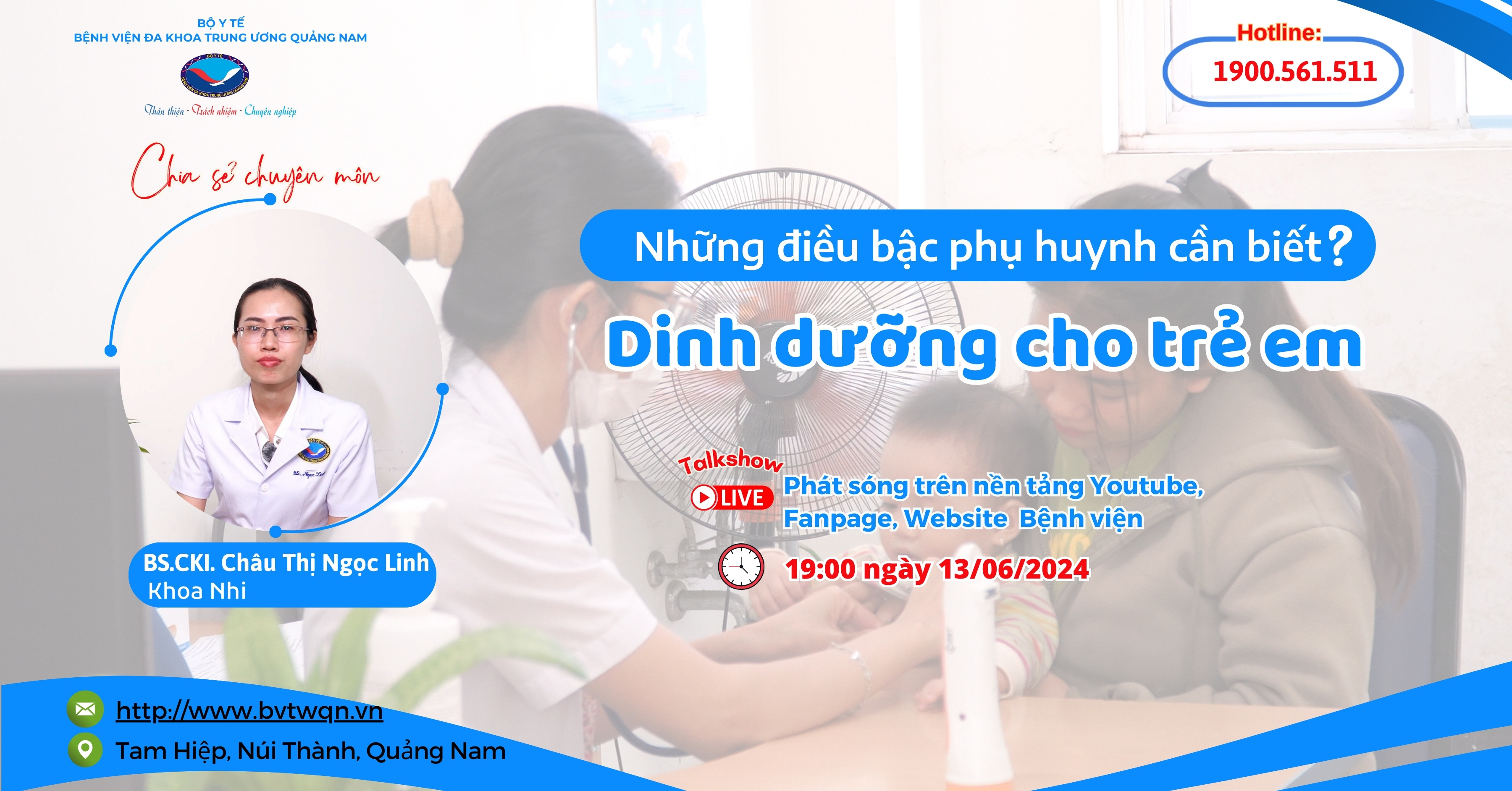 Để có hiểu biết về kiến thức dinh dưỡng hơn, kính mời quý ông bố, bà mẹ đến với chia sẻ chuyên môn về: "Dinh dưỡng cho trẻ em - Những điều bậc phụ huynh cần biết" từ BS.CKI. Châu Thị Ngọc Linh - Khoa Nhi - Bệnh viện Đa khoa Trung ương Quảng Nam.